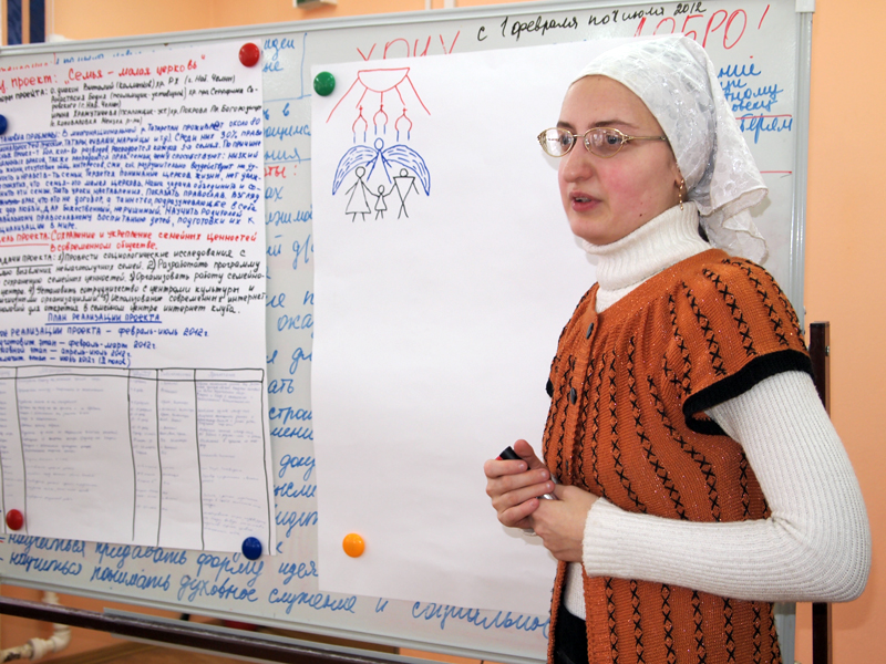 20-23 декабря в актовом зале при Свято-Вознесенском Архиерейском подворье города Набережные Челны прошел заключительный семинар под руководством сертифицированного бизнес-тренера, специалиста в области социального проектирования из города Москвы Светланы Мороховой. На последней встрече участники получили необходимую информацию, как представлять свой проект на тендер и как максимально убедить тендерную комиссию, а в конце семинара пробовали свои знания на практике, разыграв небольшие сценки. Конечно же, как всегда в процессе обучения, были указаны ошибки, даны советы из личного опыта тренера, сделаны замечания, но не было обид, веяло добротой и уютом.