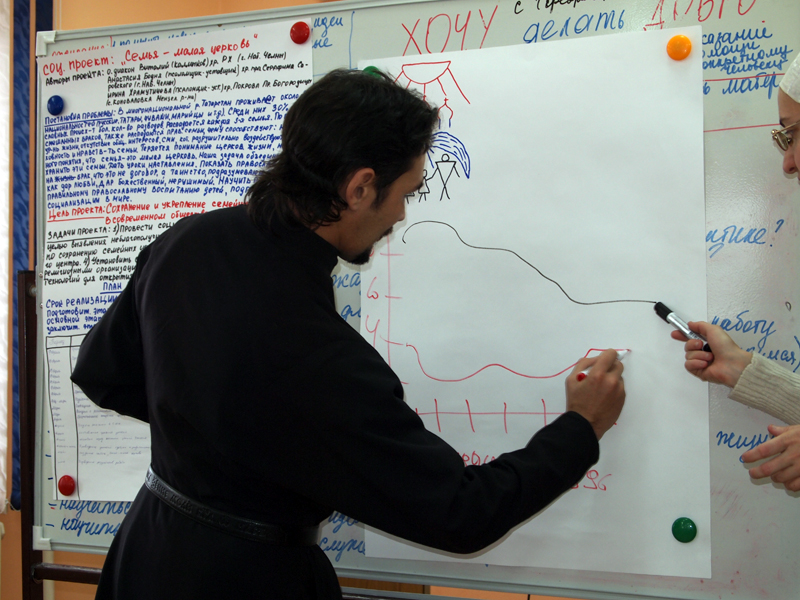 За это, казалось, короткое время участники получили необходимый толчок для дальнейшей социальной деятельности и новые идеи – это и храм на колесах, и православный детский сад при церкви, и работа с глухонемыми и слепыми, и организация временного пребывания при храмах людей, попавших в тяжелую жизненную ситуацию, а также организация при гинекологических кабинетах центра для беременных в защиту материнства. Надеемся, что все эти планы воплотятся в жизнь, ведь девиз, выбранный участниками семинара – «Твори добро», что и стало смыслом их жизни.