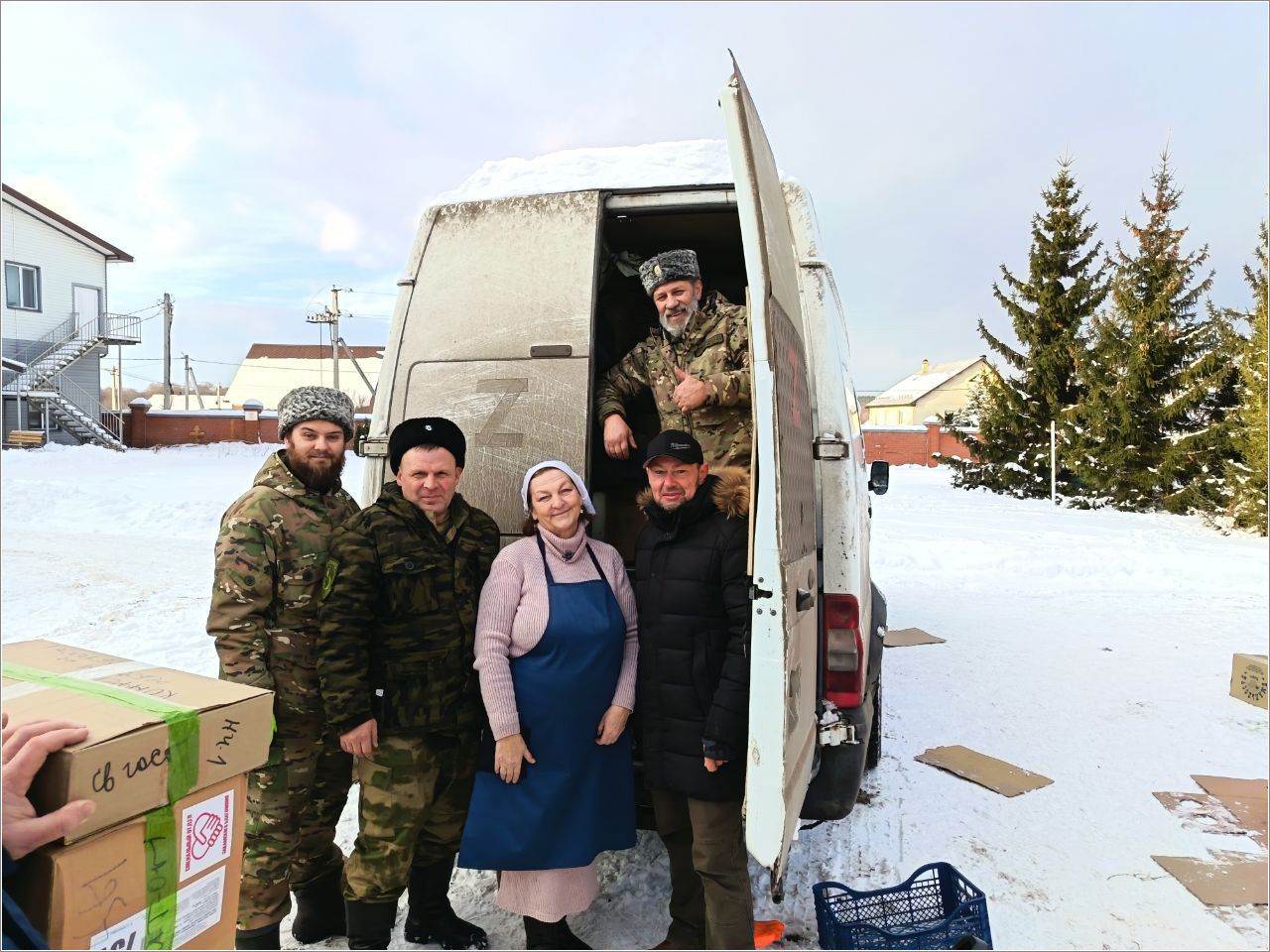 В декабре социальный отдел Закамского благочиния отправил, в Курскую область, в военные госпитали, на гуманитарный склад города Лисичанска и в зону боевых действий последний гуманитарный груз в этом году, который традиционно доставили казаки во главе с атаманом Боровецкого хутора Волжского казачьего войска сотником Михаилом Рыловым.