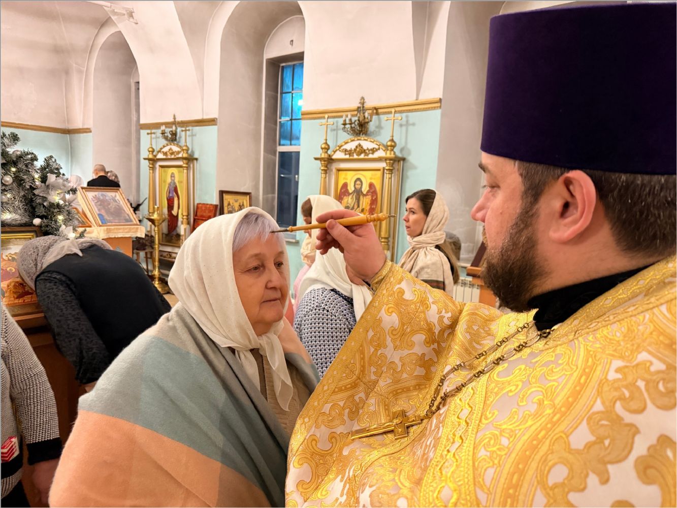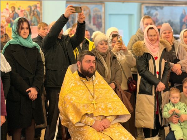 По завершении богослужения отец Роман обратился к прихожанам с праздничным поздравлением. Перед тем как дать верующим приложиться ко кресту, батюшка тепло поздравил всех с Рождеством Христовым, поделившись с собравшимися радостью великого праздника.