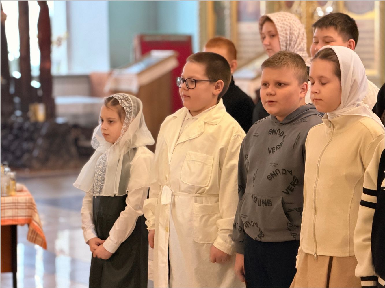Духовную атмосферу праздника наполняло прекрасное пение хора музыкальной школы под руководством Ольги Красновой и штатного хора собора. Храм был полон верующих — многочисленные прихожане собрались, чтобы вместе молитвенно встретить великий праздник. Особой радостью для многих стало Причастие Святых Христовых Тайн.