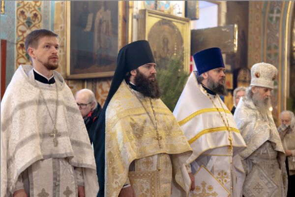 Песнопения исполнил архиерейский смешанный хор под управлением Марины Литвиненко. На мирной и сугубой ектениях были вознесены молитвы о Российском воинстве и о мире. По запричастном стихе проповедь произнёс протоиерей Николай Тимофеев. В завершение было совершено славление празднику Рождества Христова.