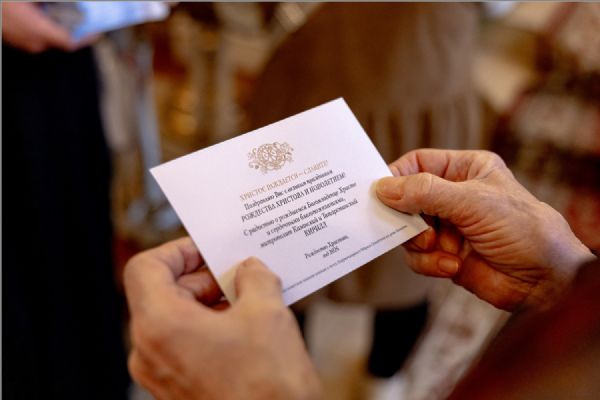 Участникам богослужения были вручены праздничные открытки. Архипастыри преподали верующим благословение.