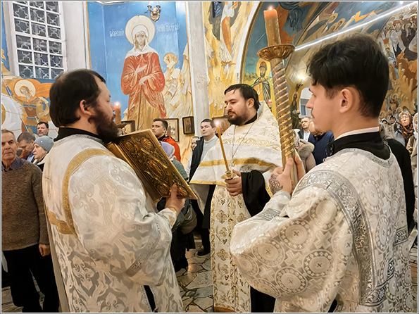 Богослужение совершил иерей Сергий Саутин в сослужении диакона Дионисия Васильева. Песнопения исполнил приходской хор под руководством Ольги Терентьевой.