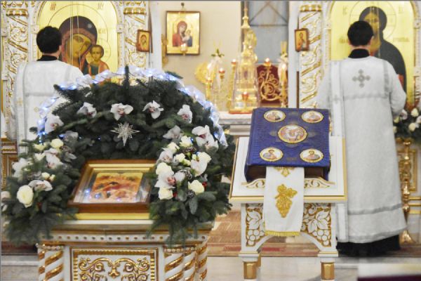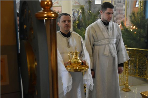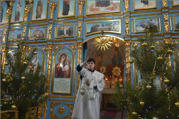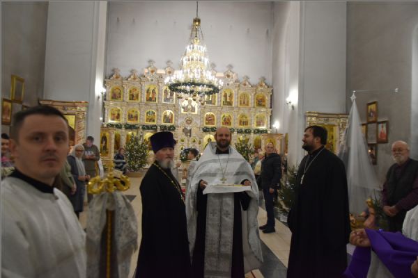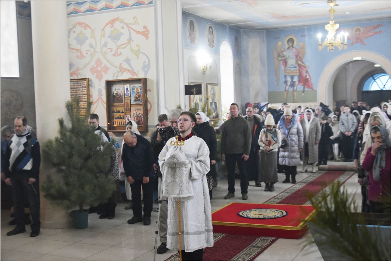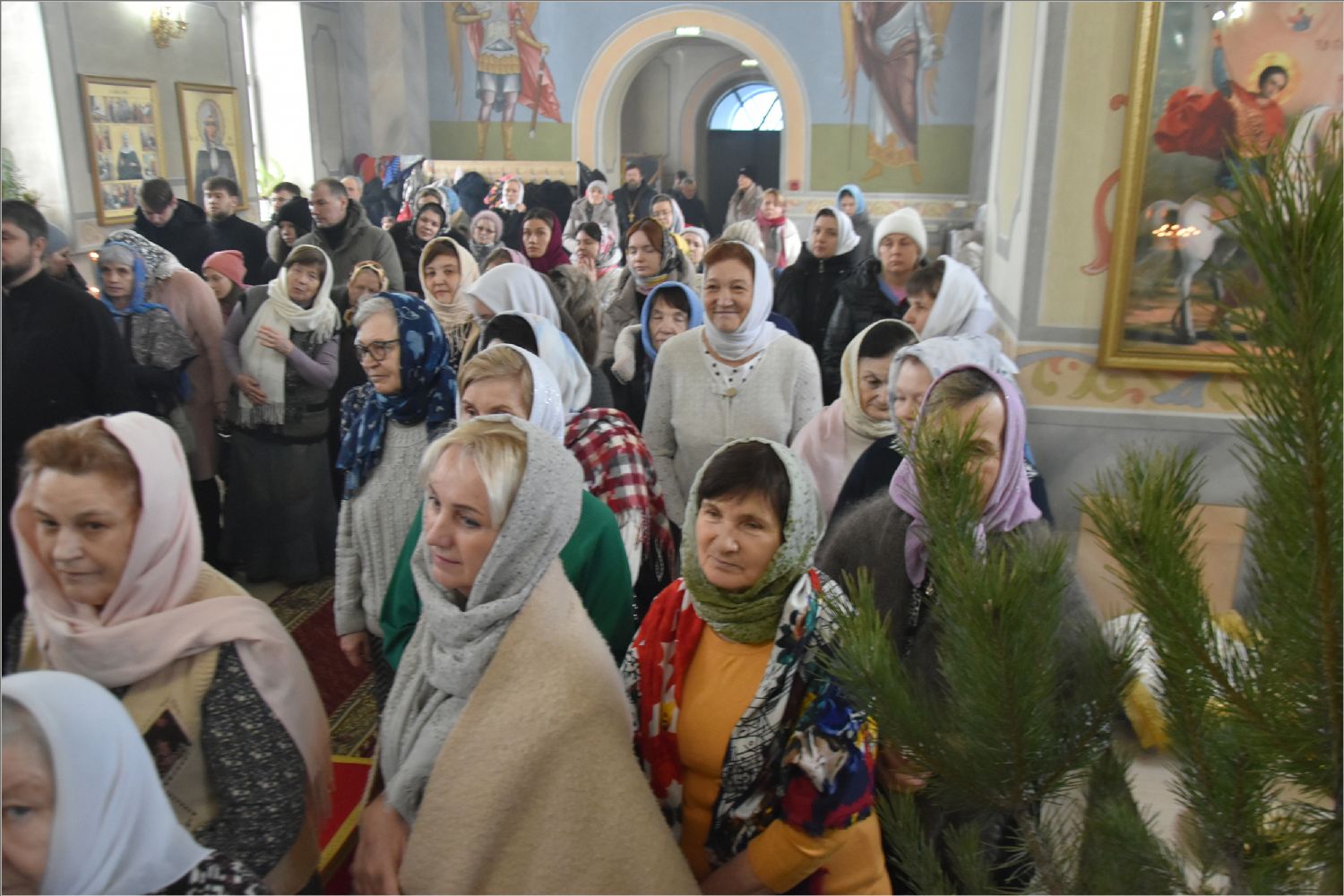 На мирной и сугубой ектениях были вознесены молитвы о Российском воинстве, о мире. 11 января празднуется день памяти мучеников 14 000 младенцев, от Ирода в Вифлееме избиенных. На мирной и сугубой ектениях были вознесены прошения и молитва в защиту нерождённых младенцев и о вразумлении имущих намерение погубити младенцев во чреве.