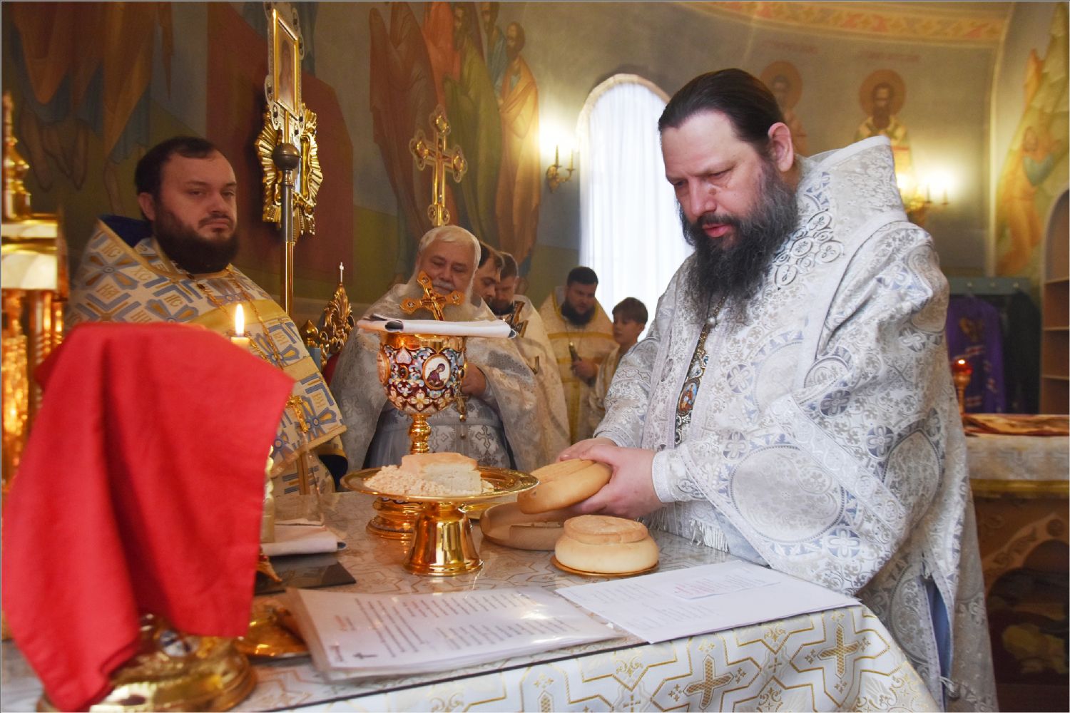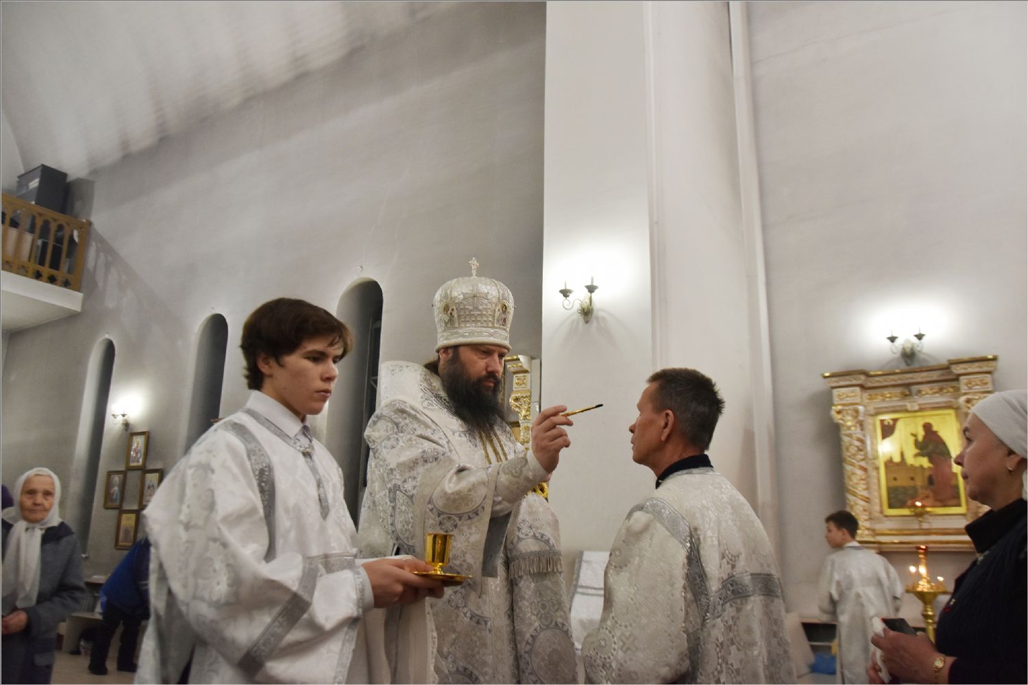 Его Преосвященству сослужили благочинный Закамского округа протоиерей Андрей Дубровин, священники храма Казанской иконы Божией Матери иерей Алексий Носов, иерей Иоанн Можаев, клирик храма святых бессребреников Космы и Дамиана иерей Сергий Саутин и клирик Свято-Вознесенского кафедрального собора иерей Сергий Иноземцев. Диаконский чин возглавил протодиакон Дмитрий Половников. Песнопения исполнил смешанный приходской хор под управлением Татьяны Вылку.