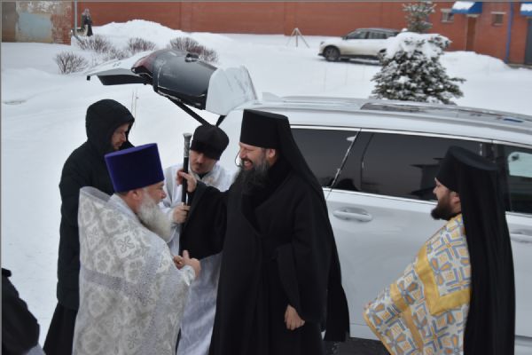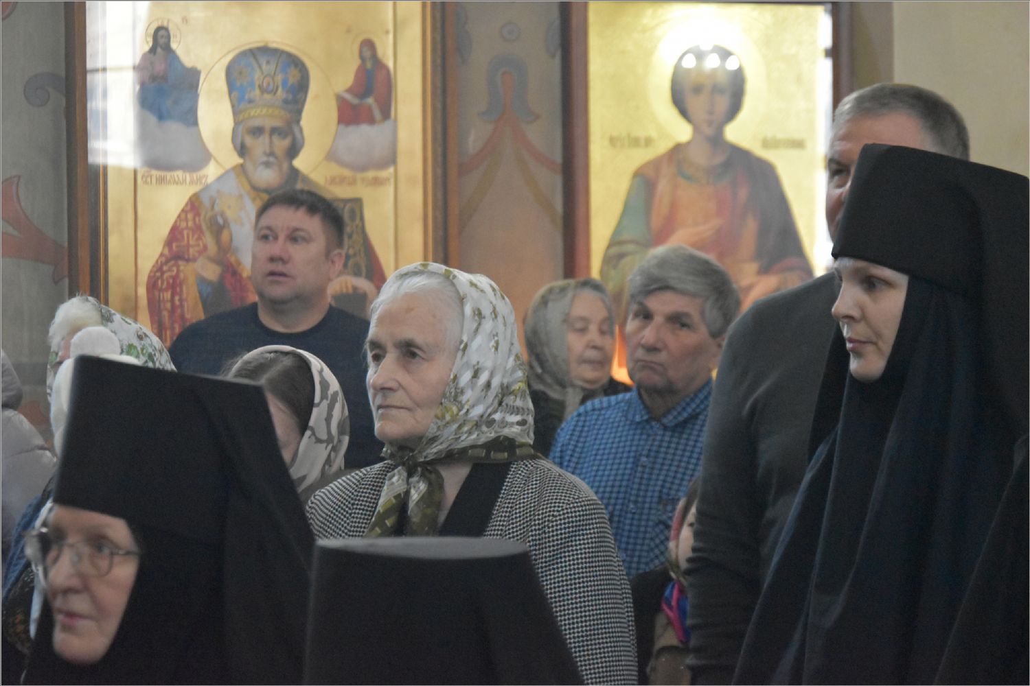 Архиерею сослужили благочинный Елабужского округа иеромонах Кирилл (Забавнов), благочинный Закамского округа протоиерей Андрей Дубровин, клирики монастыря иерей Даниил Кривов и иерей Филипп Удовенко и клирик Свято-Вознесенского кафедрального собора иерей Сергий Иноземцев. Диаконский чин возглавил протодиакон Дмитрий Половников. Песнопения исполнил смешанный архиерейский хор под управлением Натальи Гладышевой.
