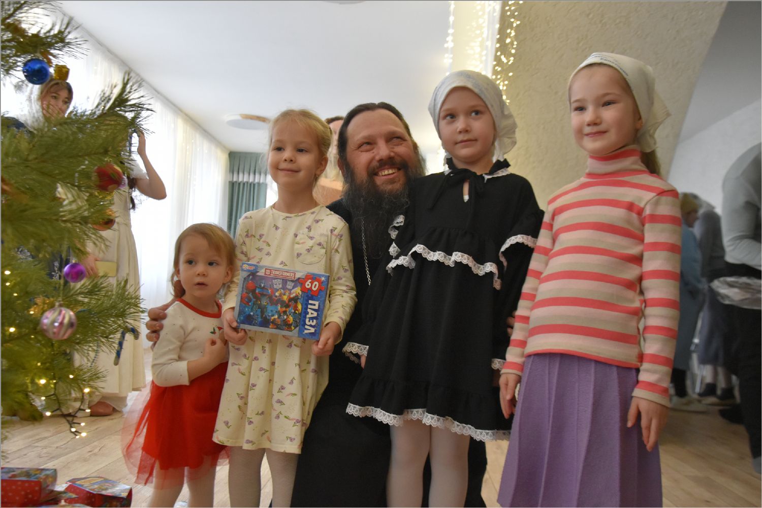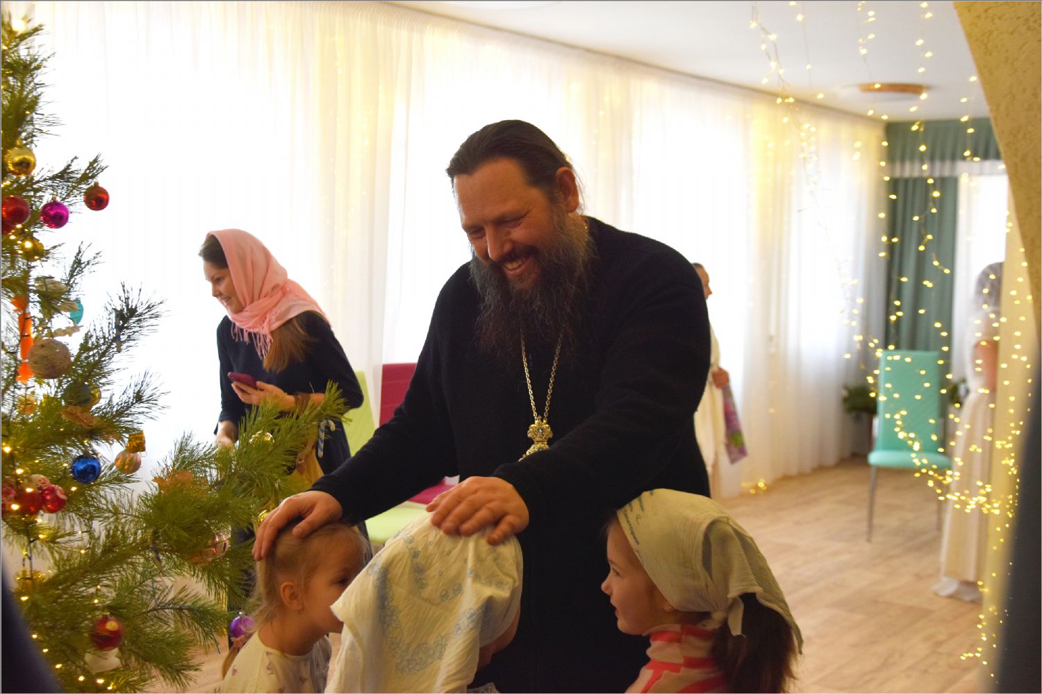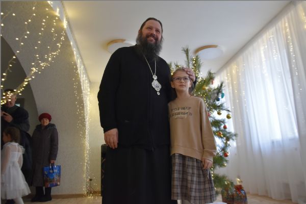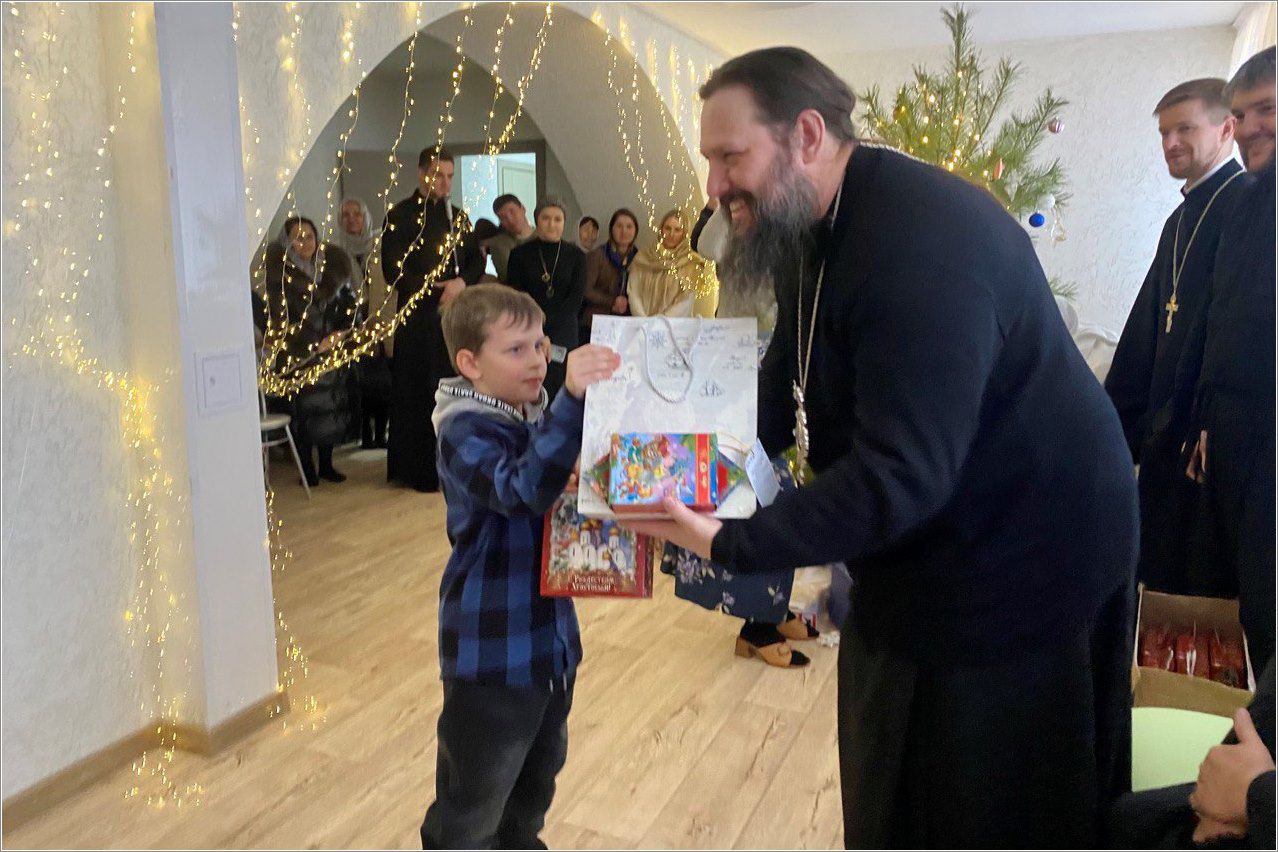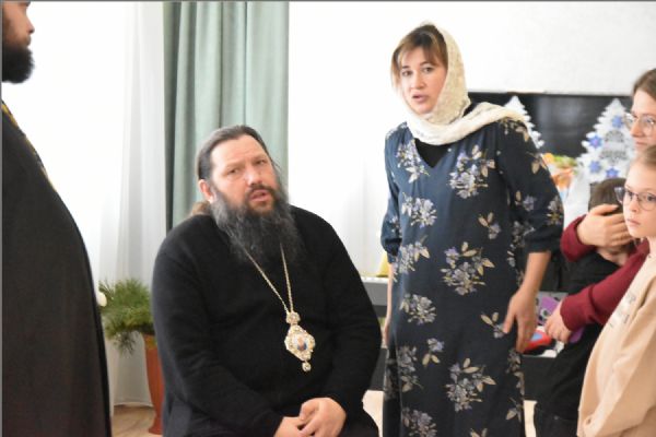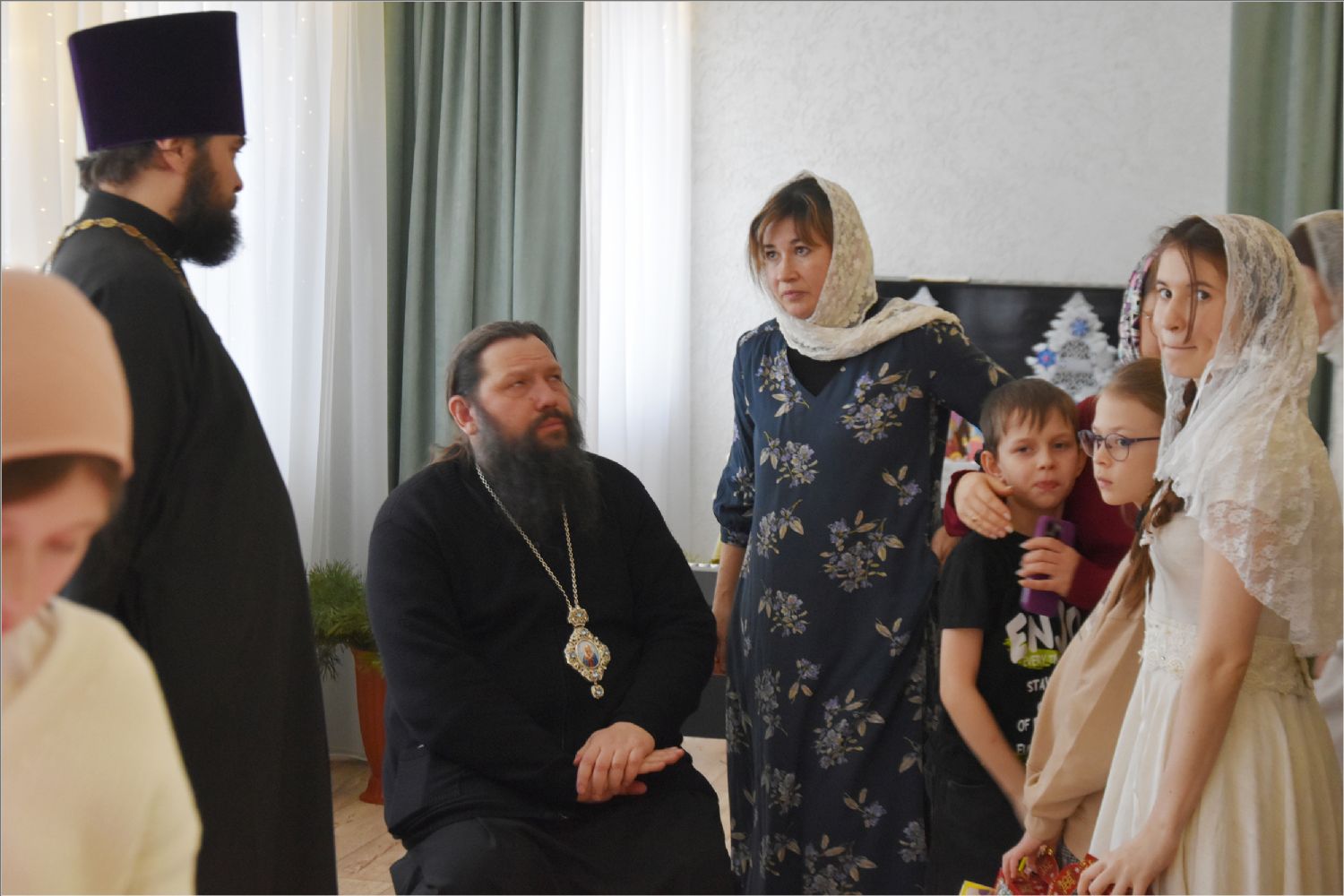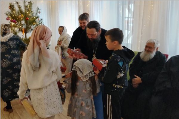 Затем архиерей посетил праздник в воскресной школе обители, где подарил Рождественские подарки детям.
