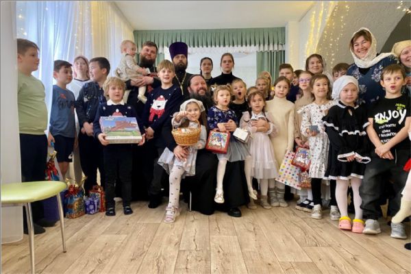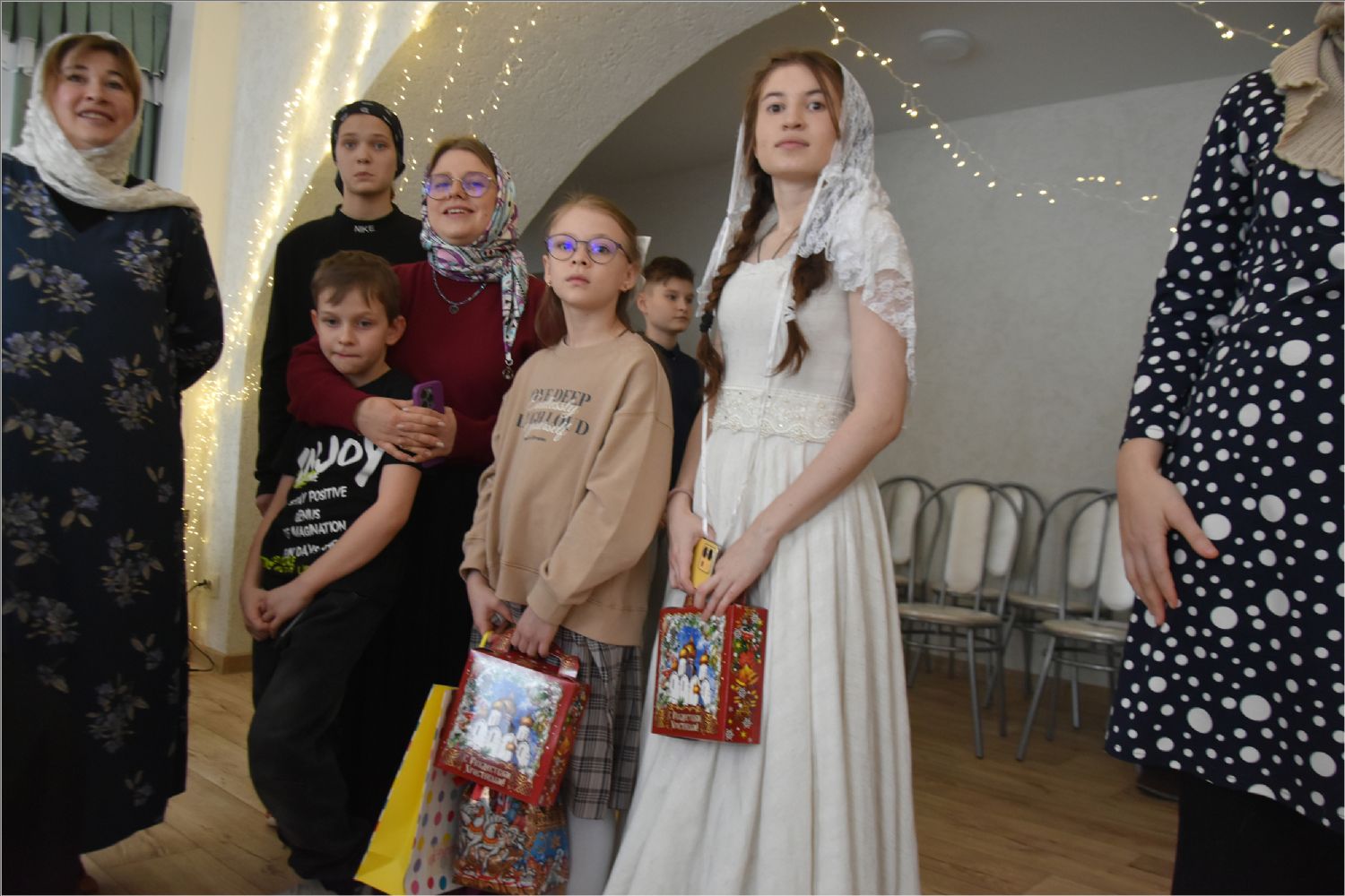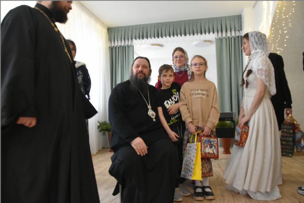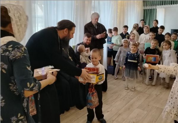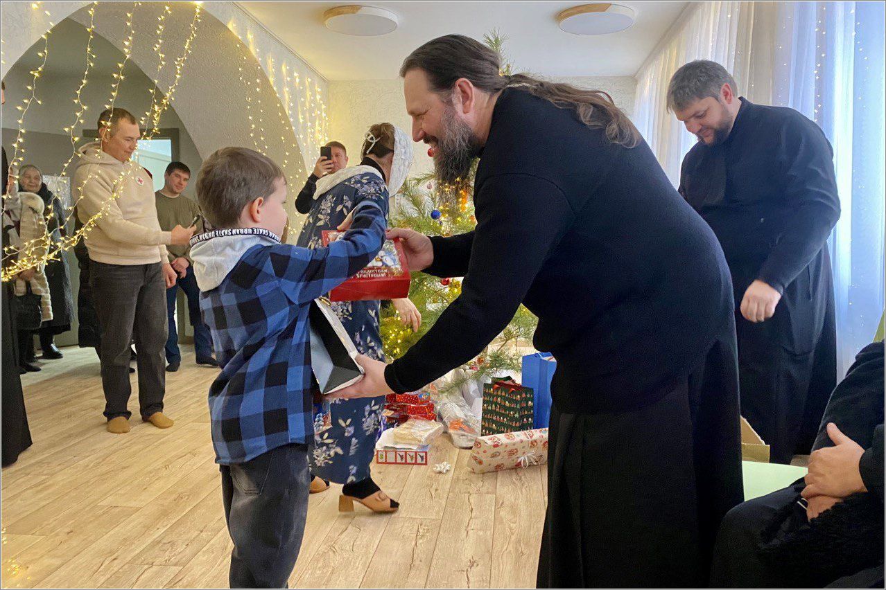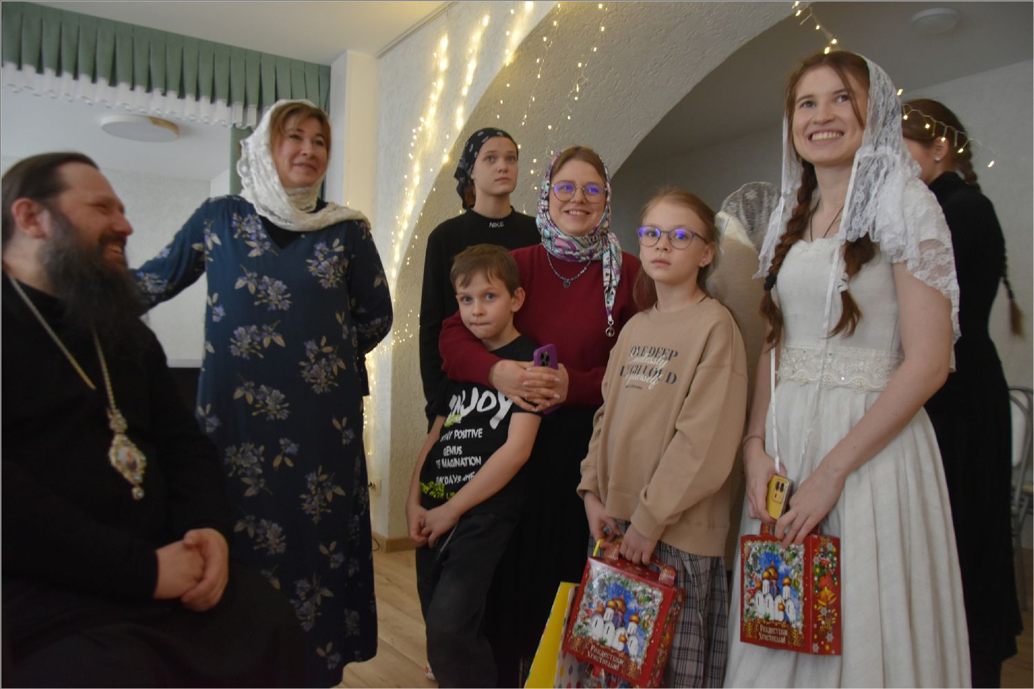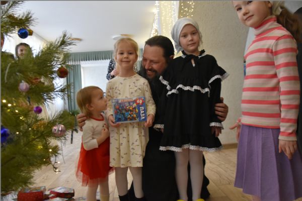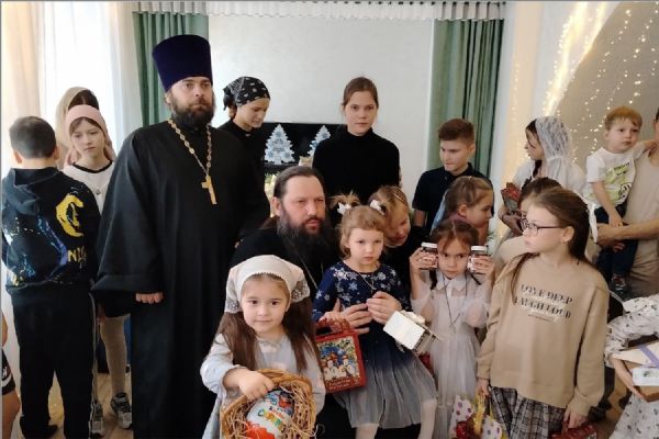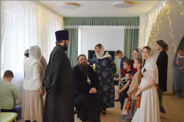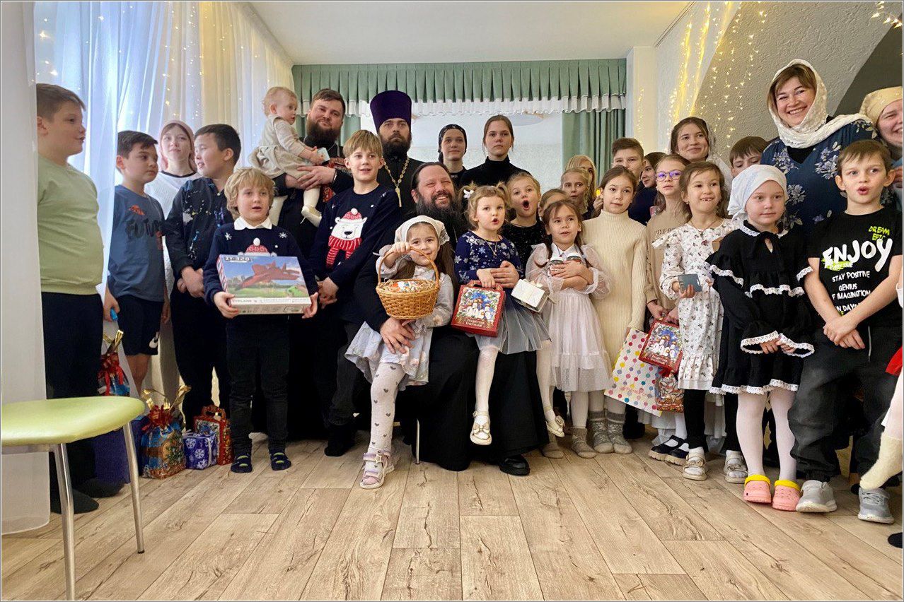 Затем архиерей посетил праздник в воскресной школе обители, где подарил Рождественские подарки детям.