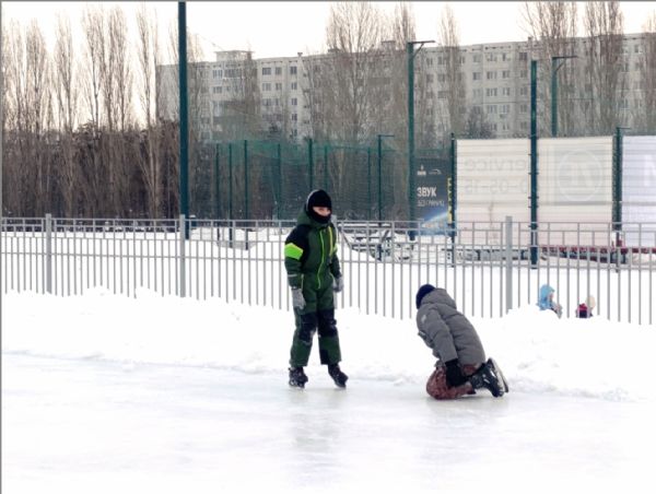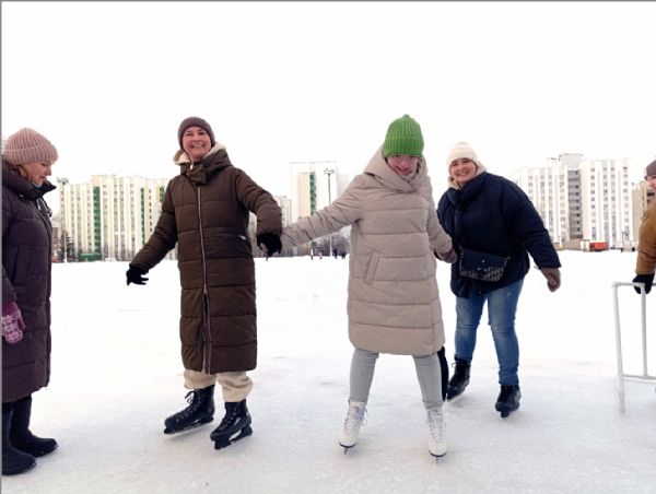 Так в первый день нового года дети в сопровождении тренера по основам физической подготовки Станислава Прокопьева и старшего педагога клуба Ольгой Желтоножко посетили каток, который в это раннее время был безлюдным; но какое удовольствие рассекать стекло нетронутого льда, оставляя на нем ровные кружевные узоры!