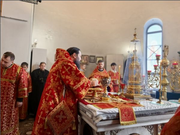 На мирной и сугубой ектениях были вознесены молитвы о Российском воинстве и о мире. По запричастном стихе проповедь произнёс иерей Иоанн Можаев.