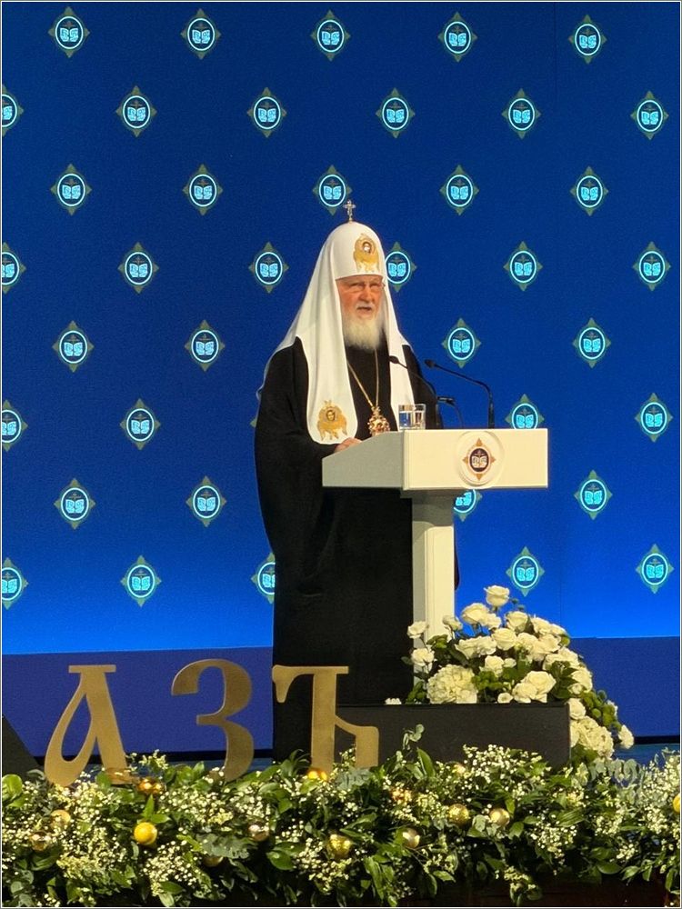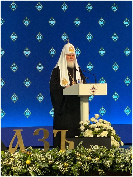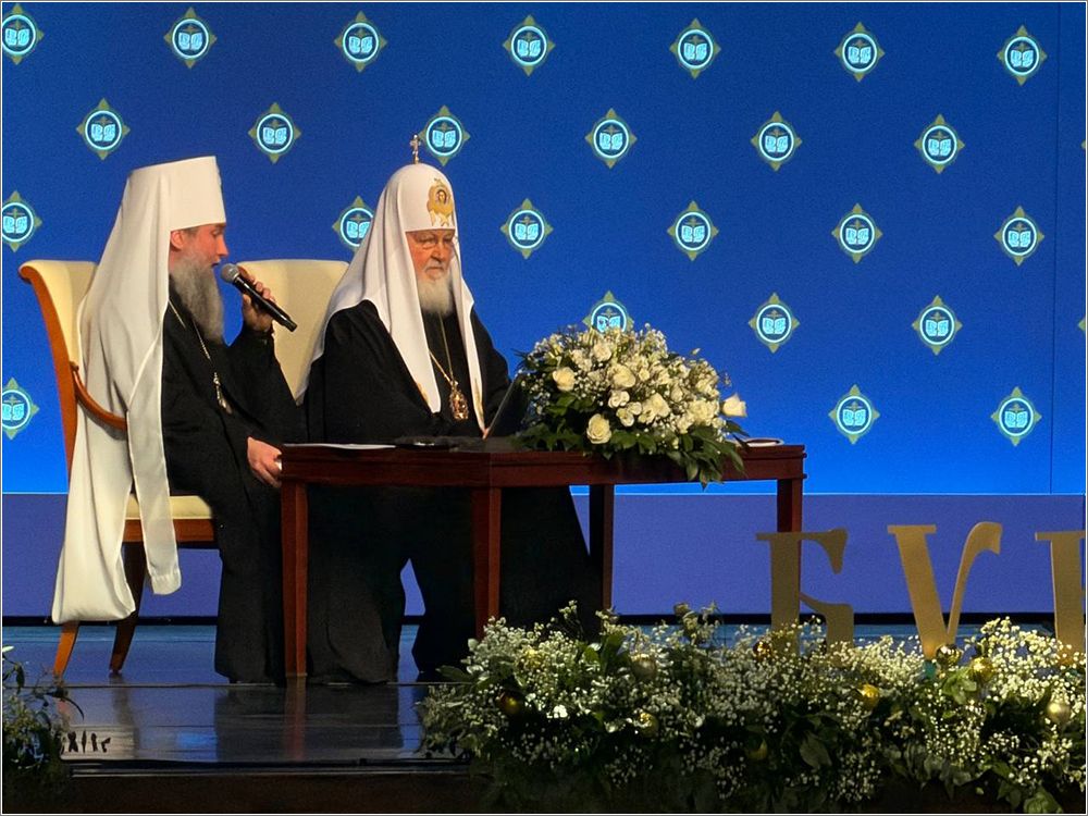 Святейший Патриарх Кирилл, председатель Международных Рождественских чтений, выступил с основным докладом перед участниками торжественного собрания.