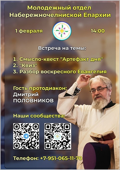 В воскресенье 1 февраля молодёжный отдел Набережночелнинской епархии приглашает на встречу.