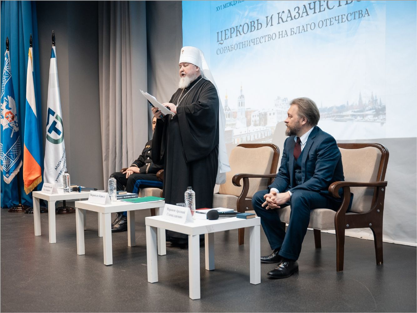 27 января в Первом казачьем университете (МГУТУ им. К.Г. Разумовского) прошла XVI научно-практическая конференция «Церковь и казачество: соработничество на благо Отечества» Организаторами мероприятия выступили Синодальный комитет Русской Православной Церкви по взаимодействию с казачеством и Первый казачий университет (МГУТУ им. К.Г. Разумовского) при поддержке Департамента национальной политики и межрегиональных связей города Москвы.