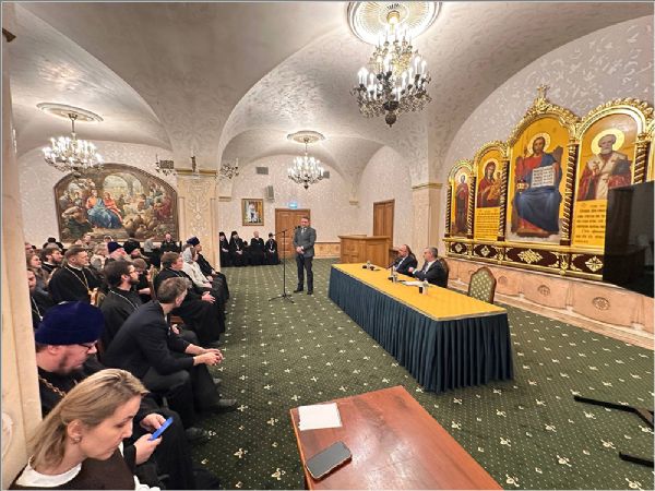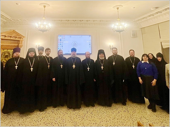 29 января в Общецерковной аспирантуре и докторантуре имени святых равноапостольных Кирилла и Мефодия впервые в рамках XXХIV Международных Рождественских образовательных чтений прошло заседание секции Синодальной богослужебной комиссии «Актуальные вопросы современной гимнографии и гимнотворчества».Мероприятия возглавил председатель Синодальной богослужебной комиссии митрополит Тверской и Кашинский Амвросий. В работе приняли участие представители 14 епархий Русской Православной Церкви. Набережночелнинскую епархию представил благочинный Елабужского округа иеромонах Кирилл (Забавнов).