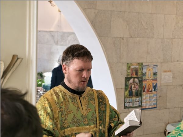 На мирной и сугубой ектениях были вознесены молитвы о Российском воинстве и о мире. Проповедь произнёс протоиерей Андрей Дубровин. Священник рассказал о святой и вспомнил, почему этот храм получил свое имя: