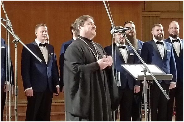 «В Священном Писании есть такие слова: «Слово Божие живо и действенно есть, и острее всякого меча обоюдоострого» (Евр. 4, 12). И вот остроту Слова Божьего, обличенного в силу искусства, мы сегодня испытали на своей душе. Не только церковные песнопения, но и композиции военных лет, произведения классиков и просто эстрадные песни трогали душу не меньше. Вы делаете великое и очень сложное дело! Я не открою секрет, что в любом храме самое проблемное место — это хор, потому что петь Богу можно только с открытой душой, а такая душа беззащитная, ее очень легко ранить, но петь по-другому не получается. И то же самое с искусством: либо ты делаешь искусство на надрыве души, либо не нужно этим вообще заниматься. Такая надорванная, раненная, но при этом открытая душа может творить чудеса: она легко принимает благодать Божию, Силу Святого Духа и транслирует ее другим людям. Мы, миссионеры, порой не знаем, как достучаться до людей: иной раз самая лучшая проповедь не трогает сердце человека, а какая-нибудь простая песенка творит чудо, в душе человека что-то щелкает, что-то переворачивается, и он становится другим, в нем отражается Бог. Зрительный зал воспринимал и церковные песнопения, и простые песни, которые сегодня прозвучали, тоже с открытой душой, а это — общение душ. Я надеюсь, что из этого зала сегодня уйдут другие люди, более чистые, более светлые, более одухотворенные».