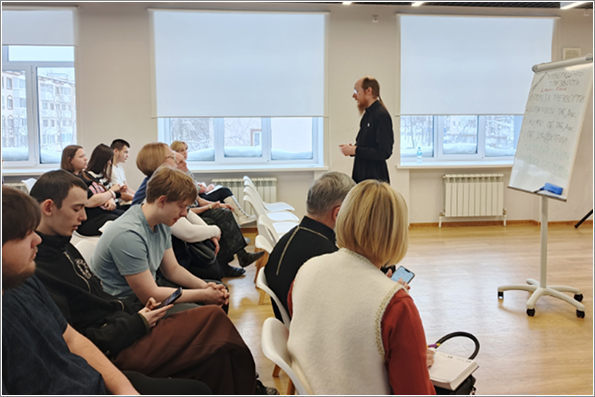 Следом отец диакон провел семинар по трезвенному просвещению для педагогов школ города. Встреча вызвала живой интерес: педагоги не только внимательно слушали, но и активно участвовали в обсуждении, делились опытом и задавали вопросы.