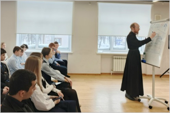 Диакон Иоанн Клименко провел уроки трезвости для воспитанников молодежного подросткового клуба «Белая ладья» и учащихся 8 и 9 классов Средней общеобразовательной школы № 3 города Елабуги. Диакон доступно и живо раскрыл перед ребятами ключевые темы: ценность трезвого образа жизни и его влияние на личностное развитие, механизмы формирования зависимостей (в том числе от психоактивных веществ), риски интернет-зависимости и способы цифровой гигиены.