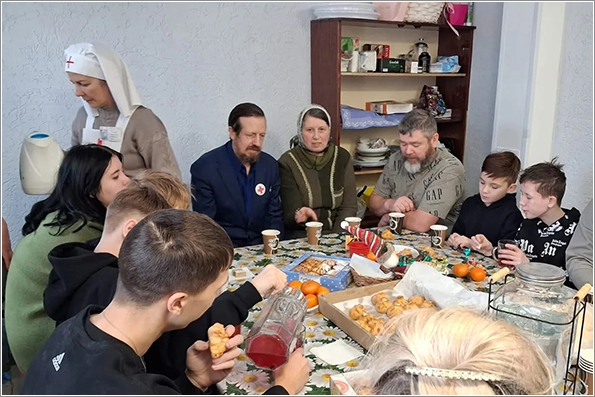 Затем в помещении воскресной школы монастыря состоялось дружеское чаепитие со сладостями и фруктами, во время которого батюшка рассказал собравшимся о подготовительных неделях к Великому посту. Ребята и взрослые с большим интересом участвовали в беседе и задавали много вопросов.