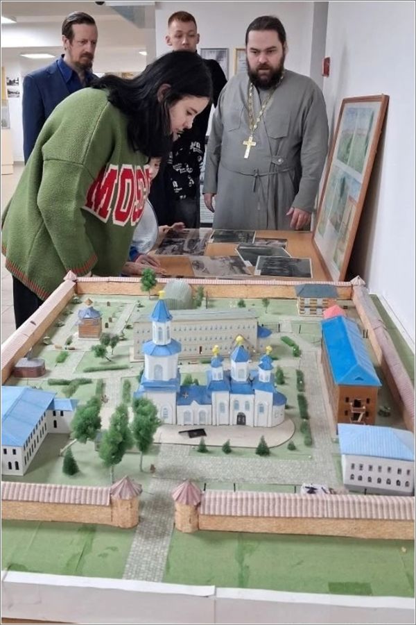 Отец Илия рассказал присутствующим, что возведение монастырского комплекса велось под началом купца первой гильдии Ивана Ивановича Стахеева. Среди имен других благотворителей, на средства которых шло строительство — Григорий Иванович и Дмитрий Иванович Стахеевы, Петр Капитонович Ушков. Гости музея узнали о церковных Таинствах, а также смогли увидеть облачения монахинь и священнослужителей, молитвенные чётки, церковную утварь и другие предметы.