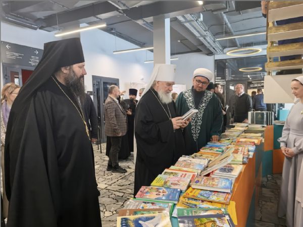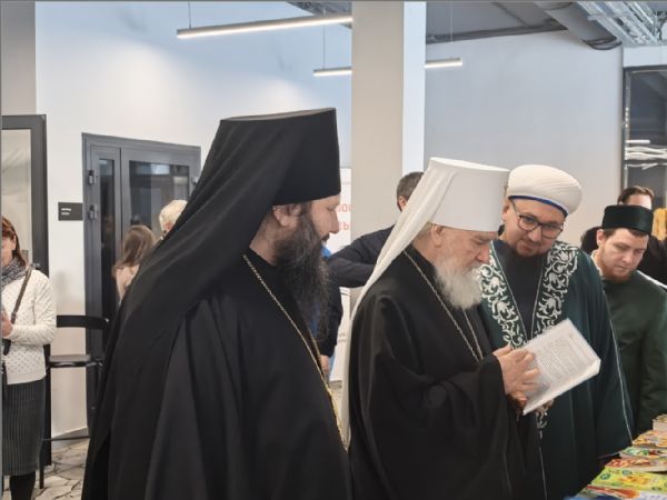«Радость Слова» — «Слово» пишется здесь с большой буквы — это необычное слово, — отметил владыка. — Но что такое Слово? Это дар Всевышнего человеку, когда он осмысленно выражает свои чувства, свою надежду, свою любовь, свою боль, свою скорбь, свою радость – это дар от Творца. Наше русское слово — великое, оно пронизано Божественным наполнением, потому что принесено было с любовью, и им всегда делились. Россия — великая, многокультурная страна, и каждый народ, более ста народностей, несет свои культурные особенности, но слово всех объединяет. Какие сейчас есть проблемы с русским словом? Во-первых, особенно среди молодежи, русское слово засоряется, и мы должны очистить язык. На русском слове описывались наши победы, создавали свои произведения Достоевский, Пушкин, Чехов, Гоголь, русское слово — это слово нашей детской сказки. Вторая проблема — современные технологии, которые отвлекают человека от книги. Гаджеты становятся учителями, но в них нет красивого русского языка, они засоряют пространство слова. Всегда книга была учителем, книга учила первому слову, несла первую информацию ребенку, передавала нашу культуру, наши чаяния, нашу общую историю, наши трудности и наши победы. Мы должны беспокоиться о том, чтобы молодежь научилась, усвоила тот русский язык, на котором созданы наши великие произведения — это наше богатство. Выставка «Радость Слова» предназначена для того, чтобы приблизить книгу к человеку и к семье».