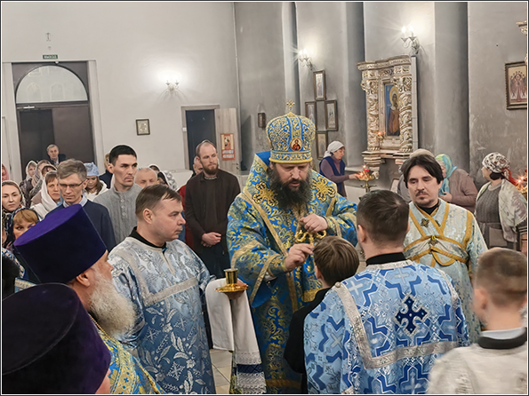 Вечером 14 февраля 2026 года, в канун Недели мясопустной, о Страшном Суде, праздника Сретения Господня, епископ Набережночелнинсий и Елабужский Гавриил совершил Всенощное бдение в храме Казанской иконы Божией Матери города Набережные Челны.
