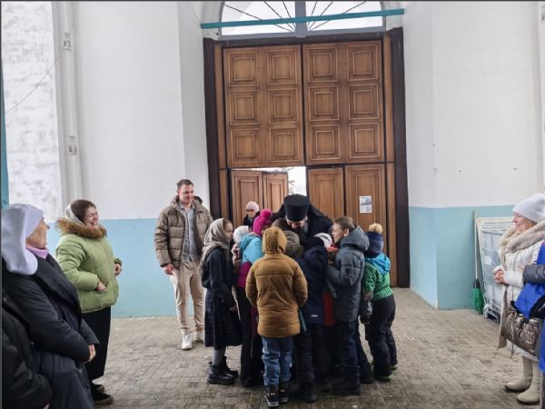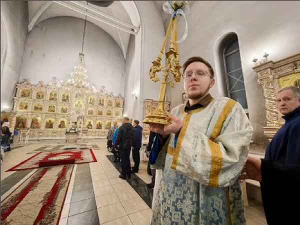 На мирной и сугубой ектениях были вознесены молитвы о Российском воинстве и о мире. По запричастном стихе иерей Роман Лепихин зачитал обращение Святейшего Патриарха Московского и всея Руси Кирилла по случаю празднования Дня православной молодёжи. После отпуста Литургии епископ Гавриил по традиции освятил свечи. Было совершено славление празднику Сретения.