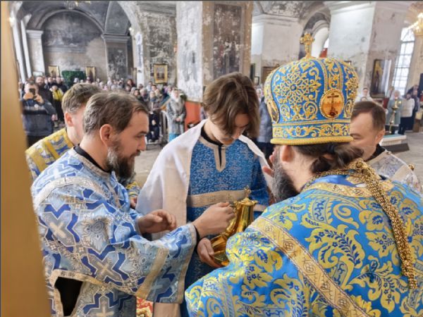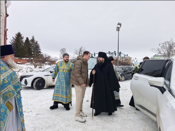 15 февраля 2026 года, в Неделю мясопустную, о Страшном Суде, праздник Сретения Господа Бога и Спаса нашего Иисуса Христа, епископ Набережночелнинский и Елабужский Гавриил совершил Божественную литургию в Спасском соборе города Елабуги.
