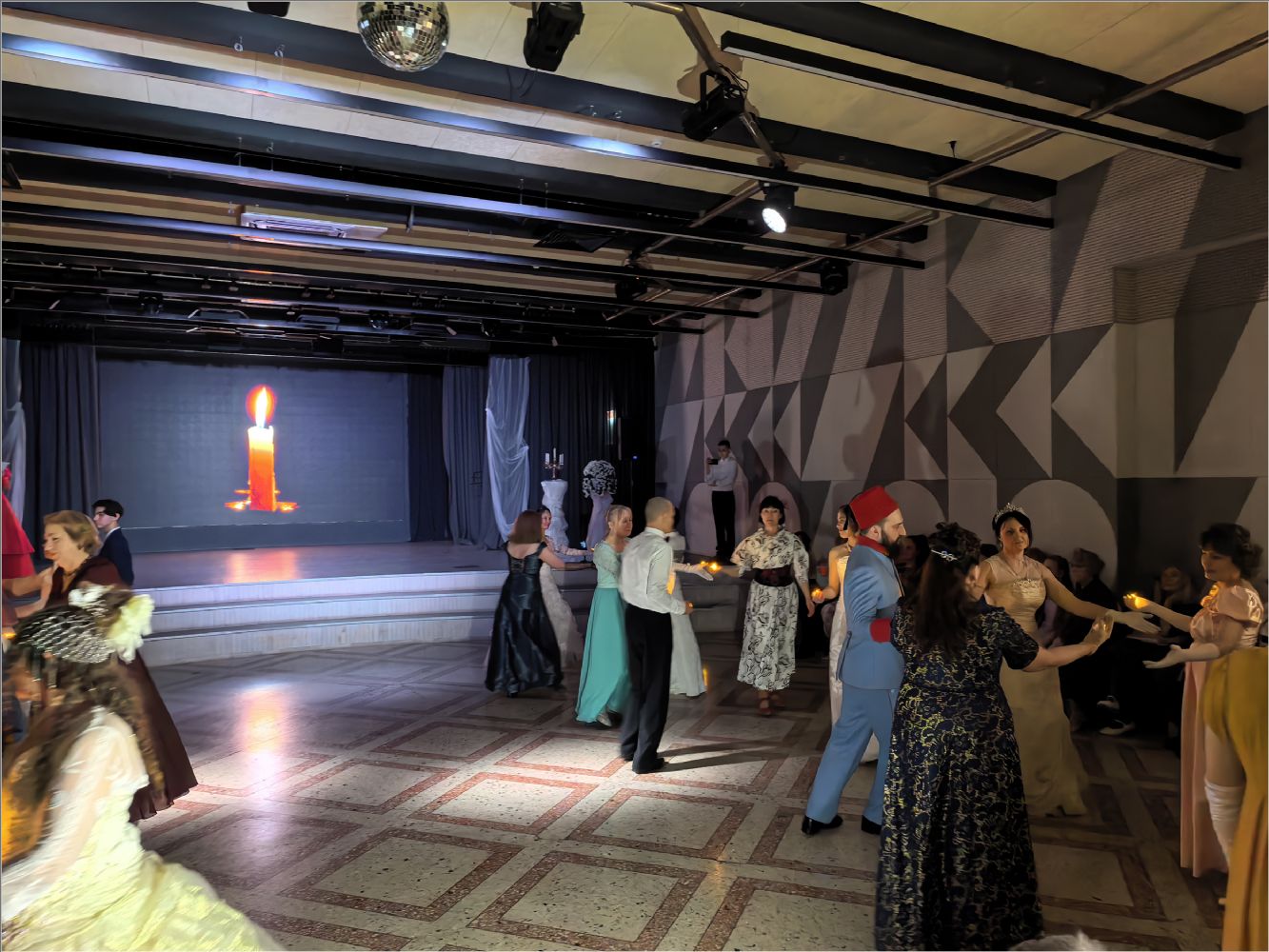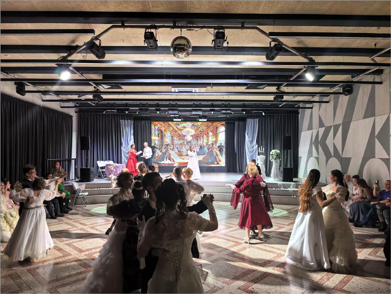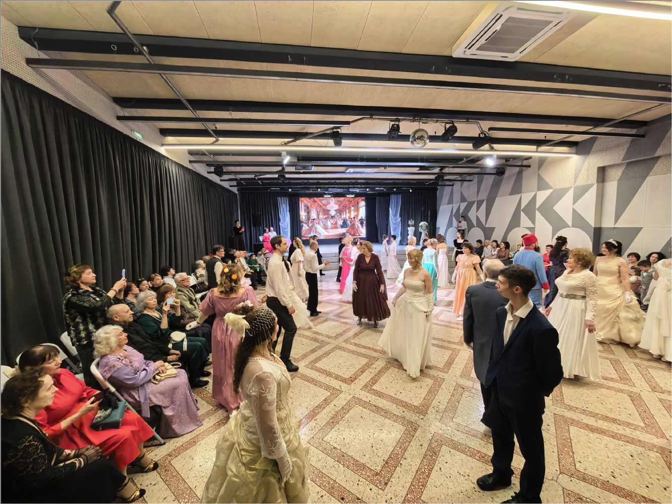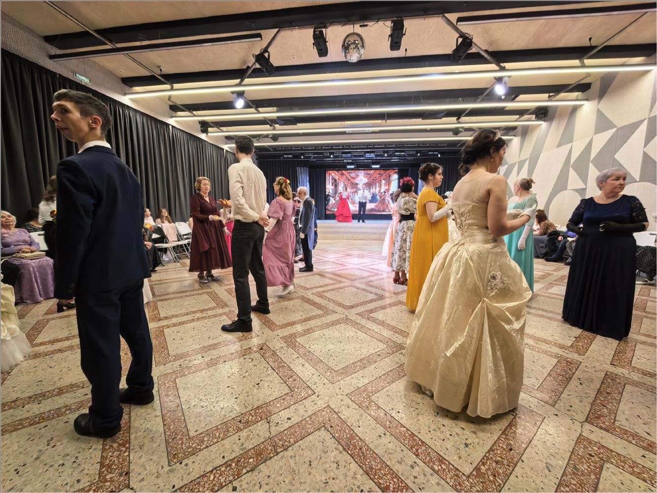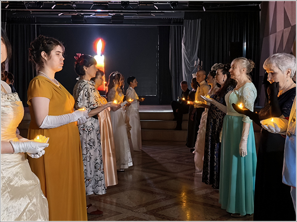 Программа вечера погрузила гостей в атмосферу старинных традиций: участники танцевали полонез, хрустальный вальс, мазурку, контрдансы («Особняк у колодца», «Прихоть мистера Бевериджа»), «Весёлую Ирландскую», «Польку Литовскую» и другие танцы. Кульминацией стал заключительный вальс-котильон — традиционный финальный танец‑игра, символизирующий прощание с балом и благодарность за встречу.