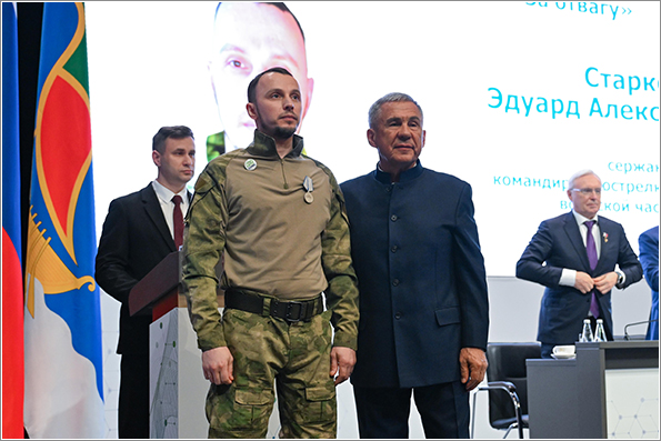 Особого внимания удостоился представитель казачьего сообщества: сержант Эдуард Старков, командир мотострелкового отделения воинской части. За проявленные мужество и героизм он был награждён медалью «За отвагу».