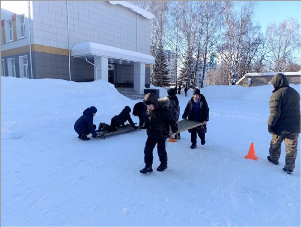 Соревнования проходили в СОШ №4. Соревновались дети в 3-х возрастных категориях. Команды среди 4-5, 6-7 и 9-11 классов. В состав команды входило по 4 участника. Каждая команда на время проходила эстафету. Первому участнику необходимо было собрать и разобрать макет автомата АК-74, следующий проходит навесную полосу препятствий, 3-й участник бежит на лыжах, стреляет из пневматической винтовки, и в завершении все вместе на носилках доставляют раненого в медпункт.