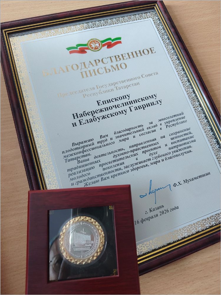 В рамках мероприятия состоялась церемония награждения. Благодарственные письма от Председателя Государственного Совета Республики Татарстан Фарида Мухаметшина получили епископ Набережночелнинский и Елабужский Гавриил и имам-мухтасиб Тукаевского района Инсаф хазрат Саубанов за многолетний плодотворный труд и существенный вклад в культурное развитие и укрепление межконфессиональных и межнациональных отношений в Республике Татарстан.