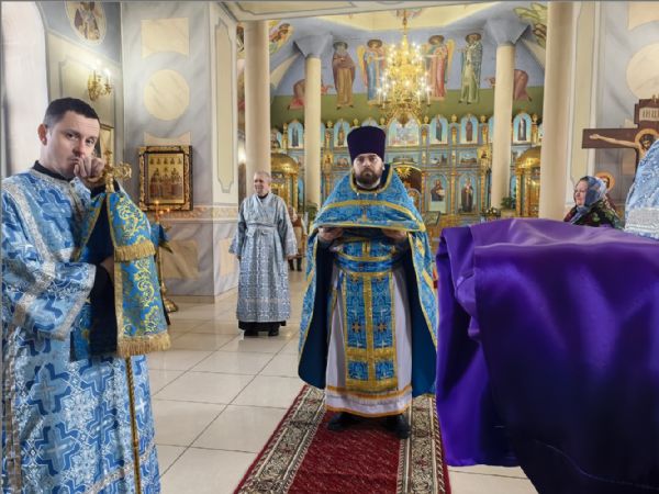 На мирной и сугубой ектениях были вознесены молитвы о Российском воинстве и о мире. По запричастном стихе проповедь произнёс иерей Даниил Кривов.