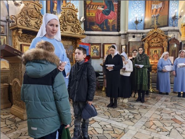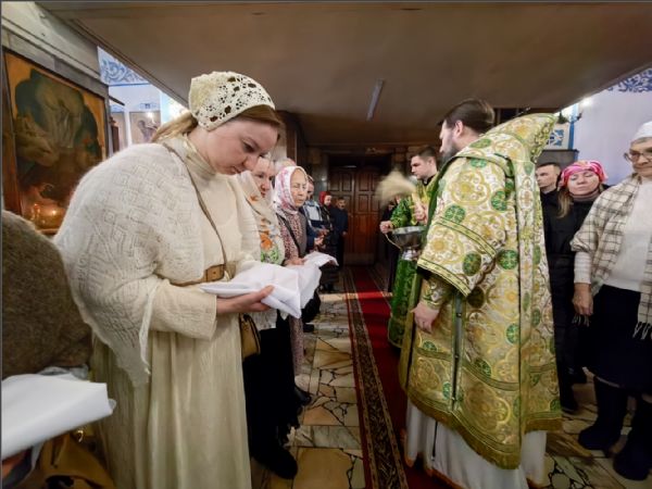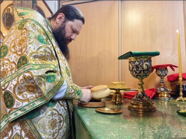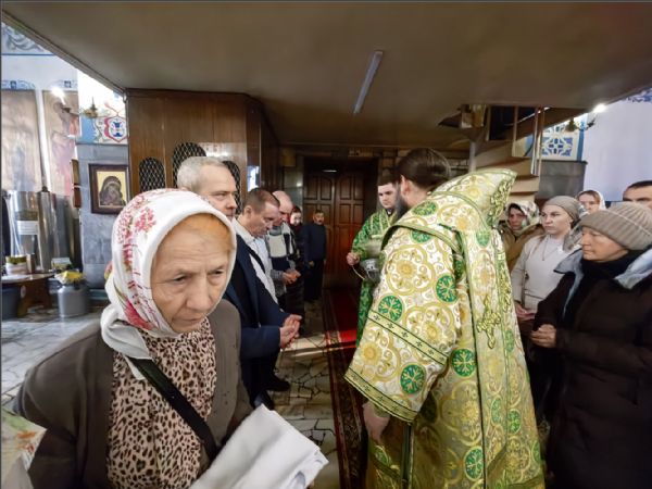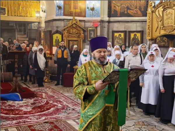 На мирной и сугубой ектениях были вознесены молитвы о Российском воинстве и о мире. По запричастном стихе проповедь произнёс иерей Дионисий Васильев.
