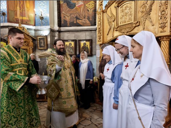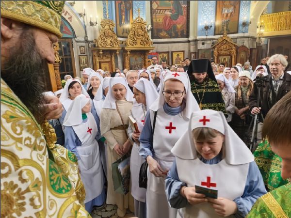 «Сегодня особый день, подготовительный к Великому посту — Собор всех преподобных отцов, в подвиге просиявших. Так промыслительно совпало, что мы сегодня посвящаем на служение наших сестер милосердия. Молитва, которая читается во время посвящения, напоминает монашеский постриг, когда мы просим, чтобы Господь принял нового монаха, стал для него радостью, утешением, Сам с ним по жизни шел. Такая же молитва читалась для сестер. Ваш подвиг любви чем-то похож на монашеский, поэтому и Дары Святого Духа тоже сходны.