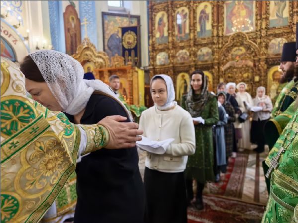 Святые Отцы различали разные виды мученичества. Есть красное мученичество, когда человек проливал свою кровь за Господа. Есть мученичество зеленое, когда подвижник так горячо борется с дьяволом, с укоренившемся в нем самом грехом, что тоже становится мучеником. Были такие зеленые мученики — святые монахи. В память о них мы сегодня служим в зеленых одеждах. Есть белое мученичество. Оно по-разному понималось. Святой Киприан Карфагенский, великий мученик, говорил, что белое мученичество — это подвиг милосердия. Это те труженики, которые за ближнего входят в его ад, чтобы этот ад стал раем. Идти в больницу, в темницу, к одинокому, покинутому, отчаявшемуся человеку — это тоже мученический подвиг. Это путь смирения и покаяния. Многие вас не поймут, кто-то будет смеяться, осуждать, ревновать. Но Господь обязательно будет вас утешать, вам помогать и даст вам вечную жизнь в царстве Своем».