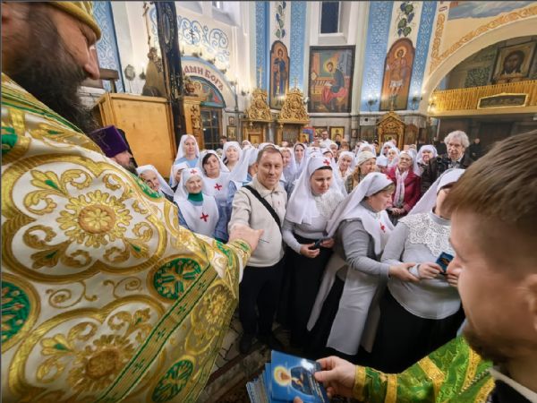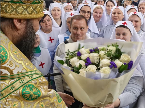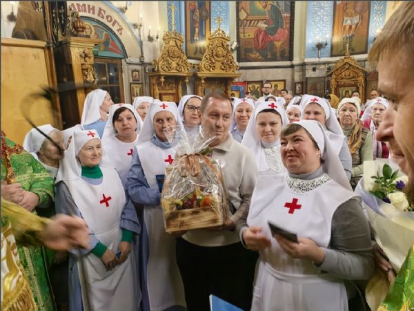 Владыка подарил всем сестрам, кандидатам в сестры милосердия и братьям милосердия акафист святой блаженной Матроне Московской. Представители сестричеств в свою очередь поблагодарили епископа Гавриила: