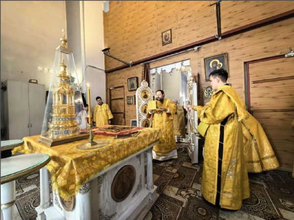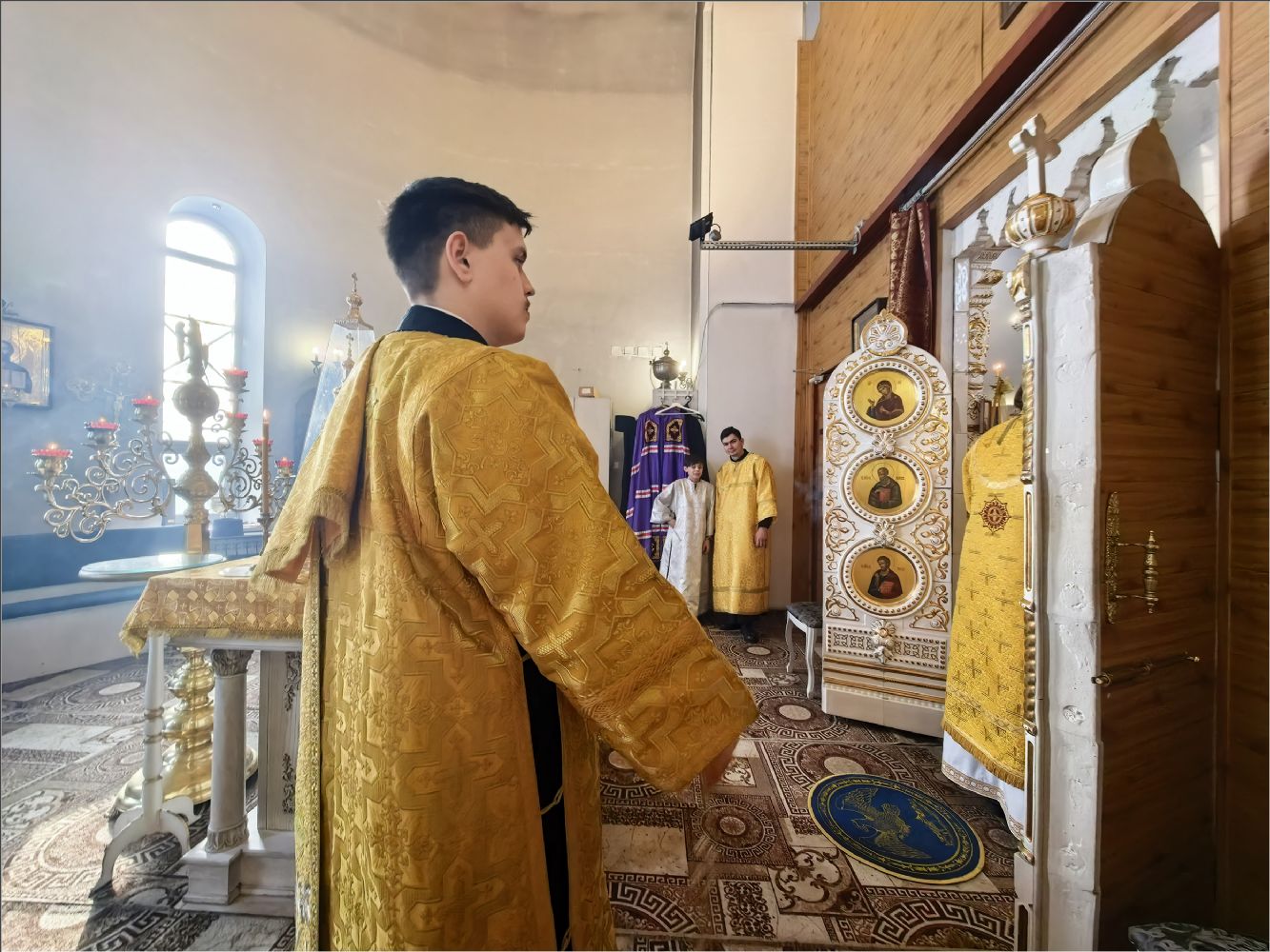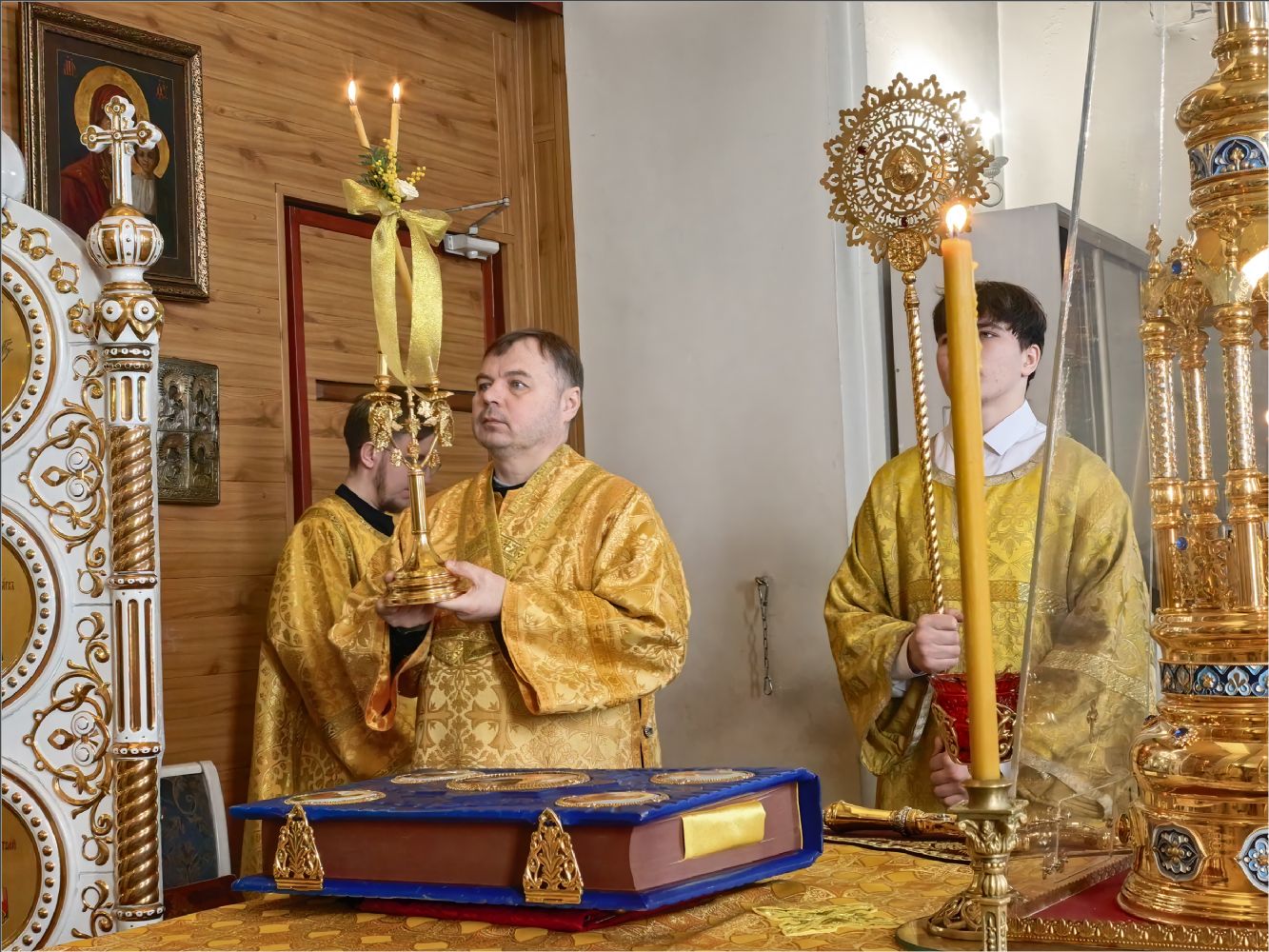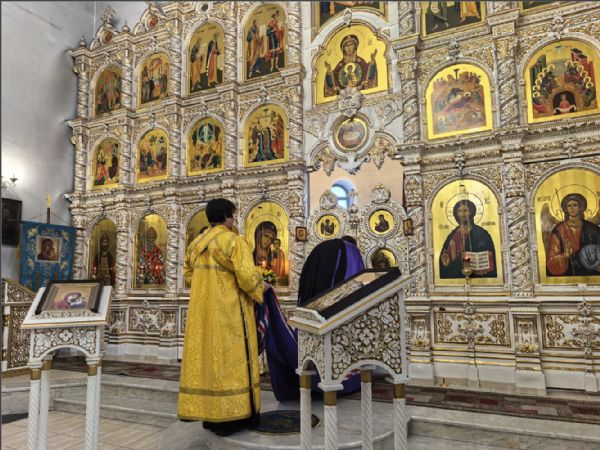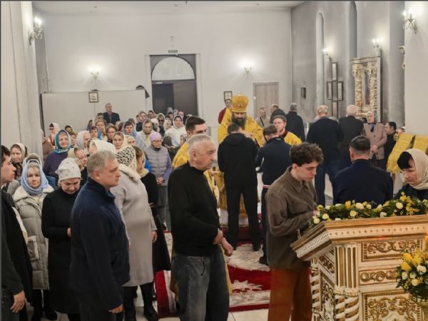 На мирной и сугубой ектениях были вознесены молитвы о Российском воинстве и о мире. По запричастном стихе проповедь произнёс иерей Алексий Носов. В своей речи священник коснулся темы покаяния, духовного обновления и значения поста как времени особого молитвенного труда и самосовершенствования.