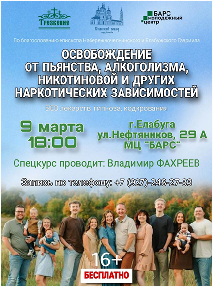 Уже 10 лет подряд во время Великого поста общество «Трезвение» при Спасском соборе города Елабуги проводит спецкурс по освобождению от зависимостей — «Школу трезвости». Программа помогает обрести опору и поддержку тем, кто хочет избавиться от табакокурения, стремится преодолеть алкогольную зависимость, ищет путь к свободе от любых форм наркотической зависимости, желает поддержать близкого человека, столкнувшегося с подобной проблемой.