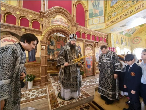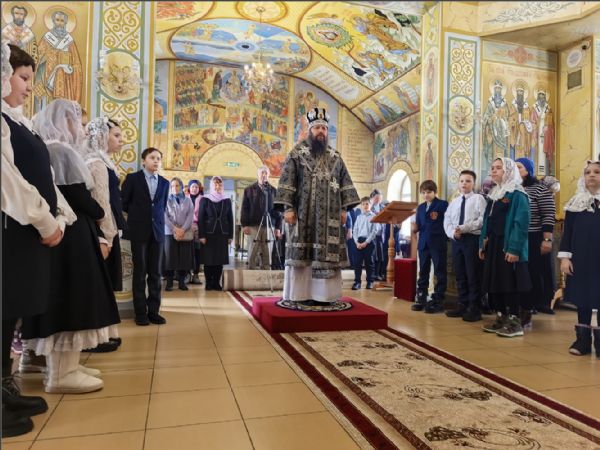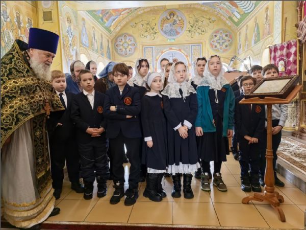 На Литургии молились учащиеся и преподаватели православной гимназии великомученика Георгия Победоносца. Ученики причастились Святых Христовых Таин.
