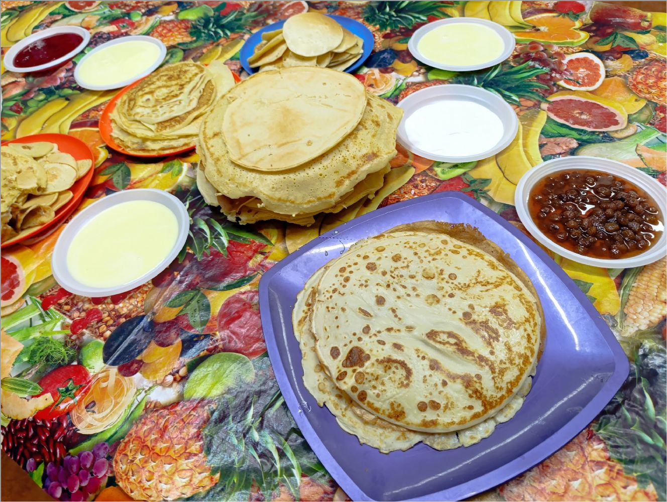 Преподаватель Ольга Желтоножко поделилась проверенным рецептом, но у всех получились блины со своим особенным вкусом, потому что каждый добавил в свои творения нотку индивидуальности.