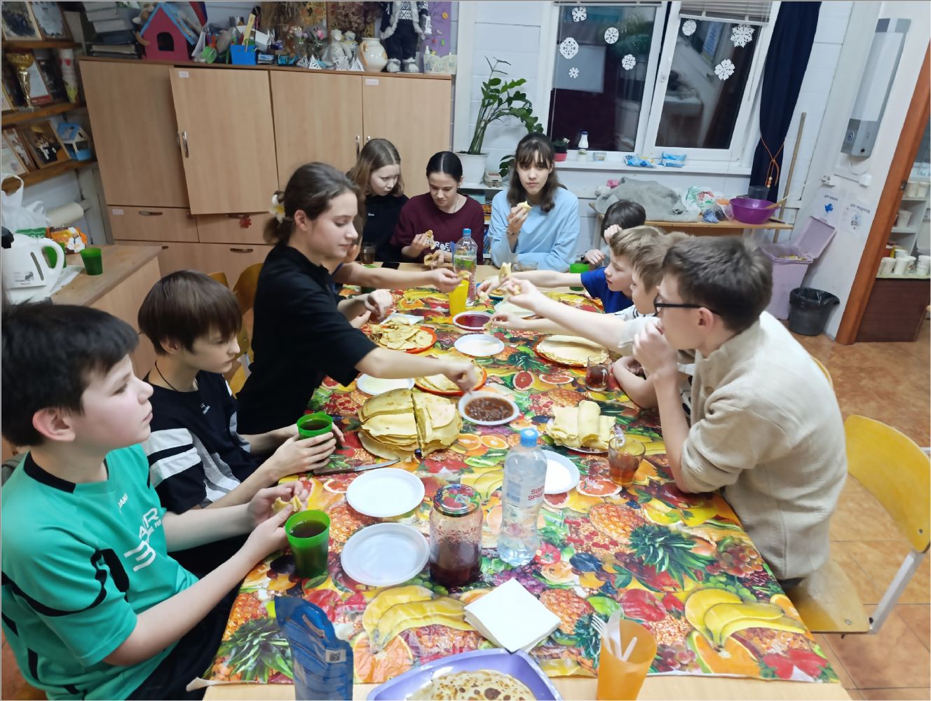 Педагог Алена Апарина провела с ребятами спортивные игры, после чего воспитанники угощали друг друга, наставников и родителей вкусными, ароматными блинами. Во время совместного чаепития преподаватели в непринужденной, располагающей к доверительному разговору обстановке, провели беседу с детьми о духовном смысле Великого поста, прощеном воскресенье и Масленице.