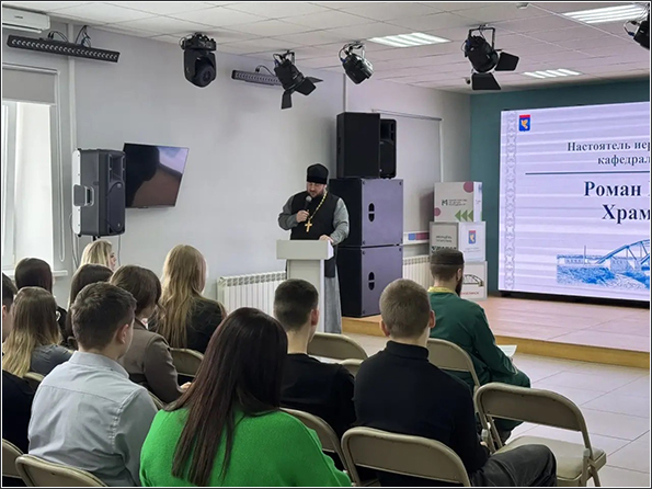 12 марта 2026 года в молодёжном центре «Ялкын» города Мензелинска прошла встреча представителей религиозных конфессий с учащимися средних специальных учебных заведений, сообщает страница Никольского собора в Мензелинске. Мероприятие провели настоятель Никольского собора Мензелинска иерей Роман Храмутичев и имам‑мухтасиб Мензелинского района Рамзиль хазрат Садыйков. Ключевая тема встречи — развитие межрелигиозного и межнационального диалога в молодёжной среде. В ходе беседы участники обсудили значение взаимного уважения и толерантности, роль молодёжи в укреплении единства общества, примеры конструктивного взаимодействия представителей разных культур и вероисповеданий. Иерей Роман Храмутичев обратился к студентам с речью, подчеркнув важность религиозного диалога для мирного и созидательного развития общества. Священнослужитель напомнил, что Татарстан исторически — регион гармоничного сосуществования разных религиозных традиций, а Мензелинск с XVII века формировался как многонациональный и многоконфессиональный город.