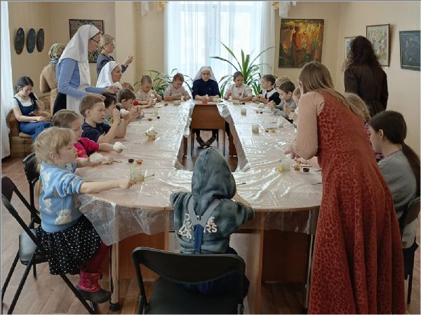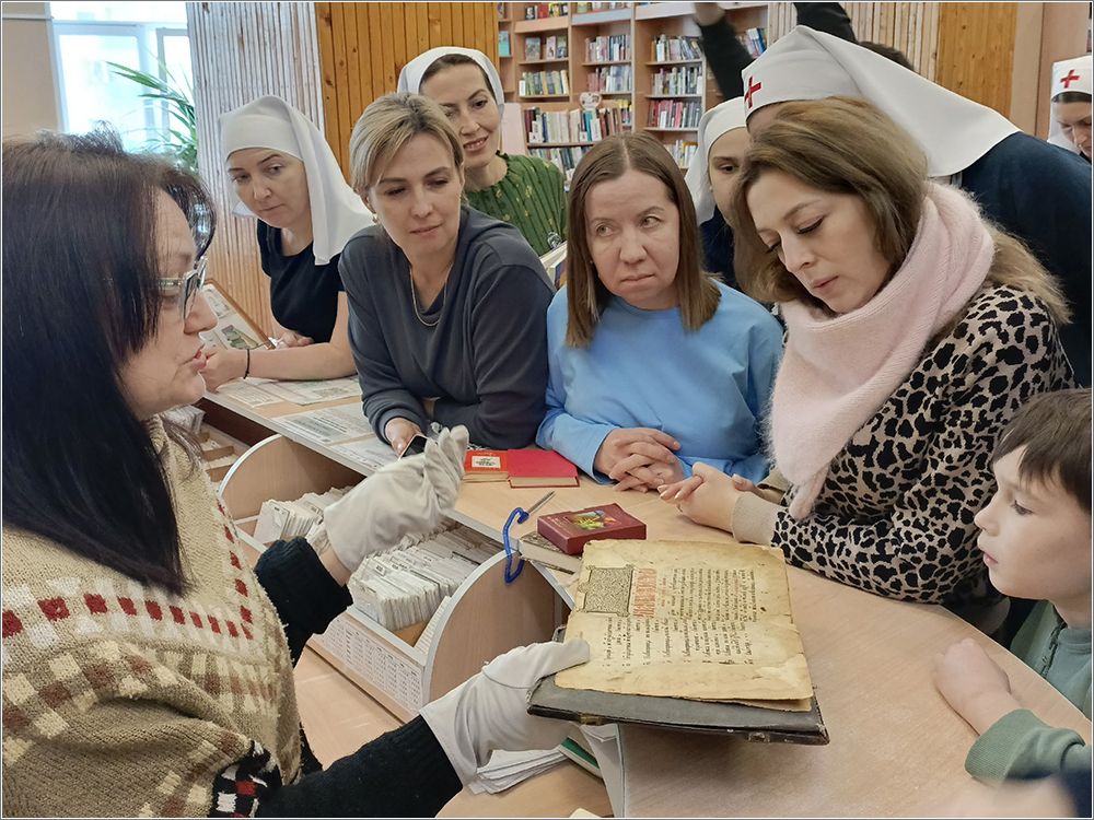 В храме преподобного Серафима Саровского сестры милосердия Свято‑Серафимовского сестричества, добровольцы, дети воскресной школы «Зёрнышко», родители и преподаватели посетили Центральную библиотеку Набережных Челнов. Работники библиотеки провели для гостей экскурсию и познакомили с молитвословом XVI века. Участники с интересом изучали старинные тексты, обсуждали особенности церковнославянского языка и выбирали интересные книги для чтения. После экскурсии все приняли участие в мастер‑классе по изготовлению подставки под яйцо — будущие пасхальные подарки для родных и изделия для Пасхальной ярмарки.