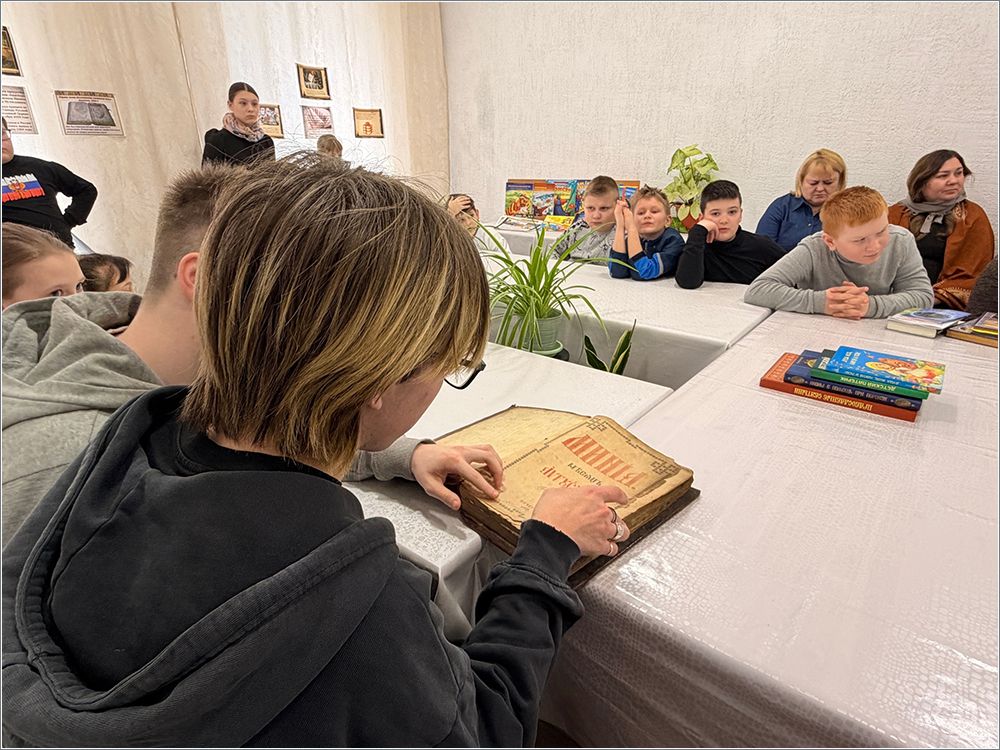 Гости узнали об истории праздника, истоках книгопечатания на Руси и его роли в распространении духовных знаний. Ярким моментом стал обмен книгами: ребята принесли любимые издания из домашних библиотек и с воодушевлением делились впечатлениями. Отец Роман предоставил для ознакомления старинные книги 1873 года из архива собора — возможность прикоснуться к страницам, которым более полутора веков, вызвала у гостей искреннее восхищение.