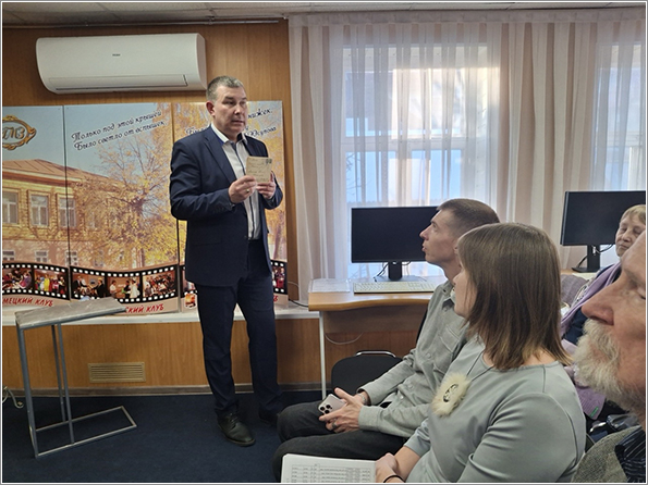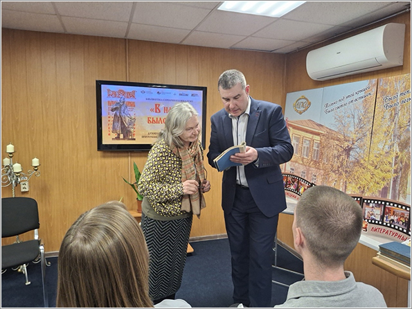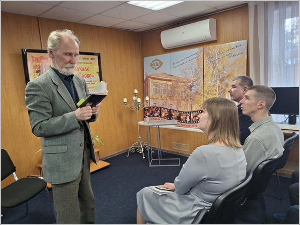 В ходе мероприятия Андрей Николаевич представил подборку книг, специально подобранных к этой встрече. Он подробно рассказал о взаимосвязи изданий с историей города Елабуги и с духовно‑просветительской темой вечера. Каждое слово ведущего напоминало о том, что книга — это не просто источник знаний, но и проводник к духовным истинам, мост между поколениями, хранительница вечных ценностей.