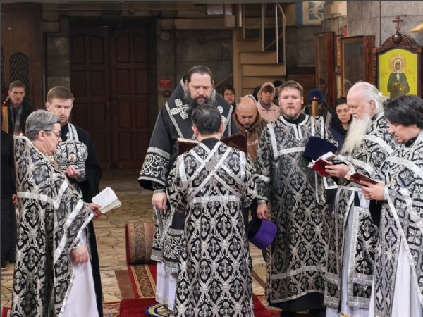Во время Литургии Преждеосвященных Даров было прочитано Евангелие Великого Понедельника и вознесена молитва о мире.