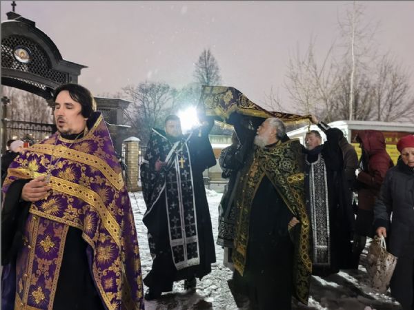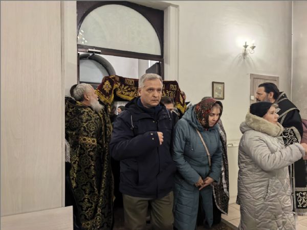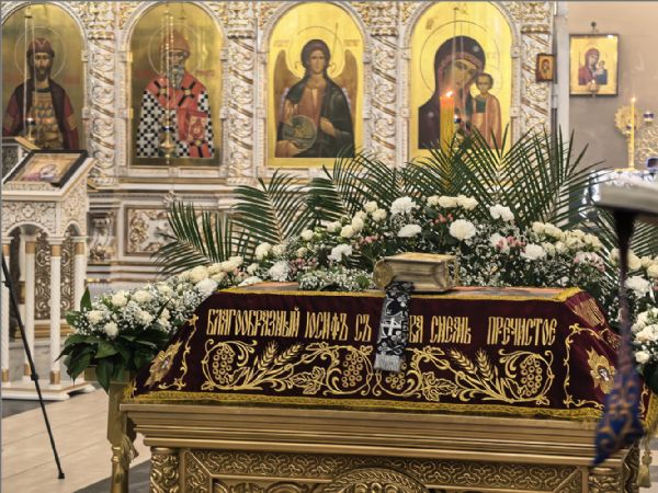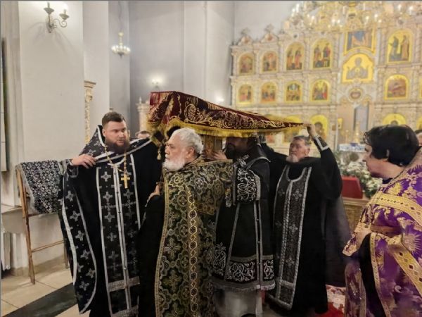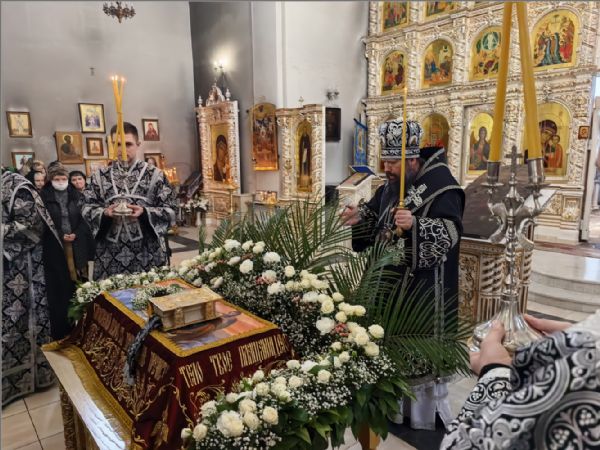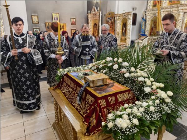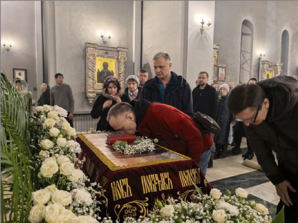 В завершение духовенство и молящиеся совершили молитвенное поклонение перед Плащаницей.