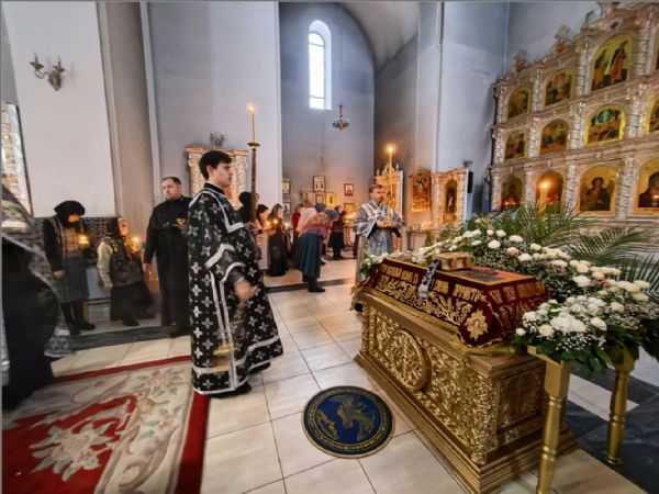 Затем было совершено молитвенное поклонение перед Плащаницей.